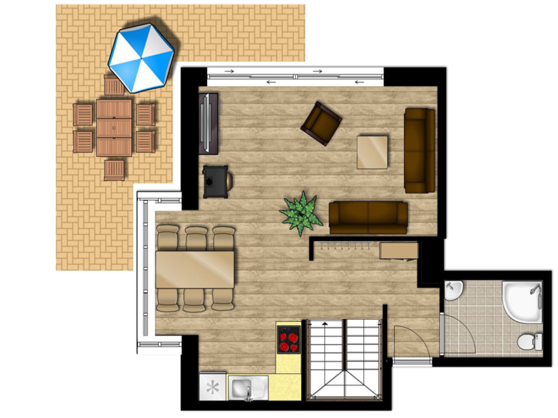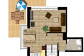 • 1 Wohn-Schlafzimmer auf der oberen Etage mit Schlafsofa