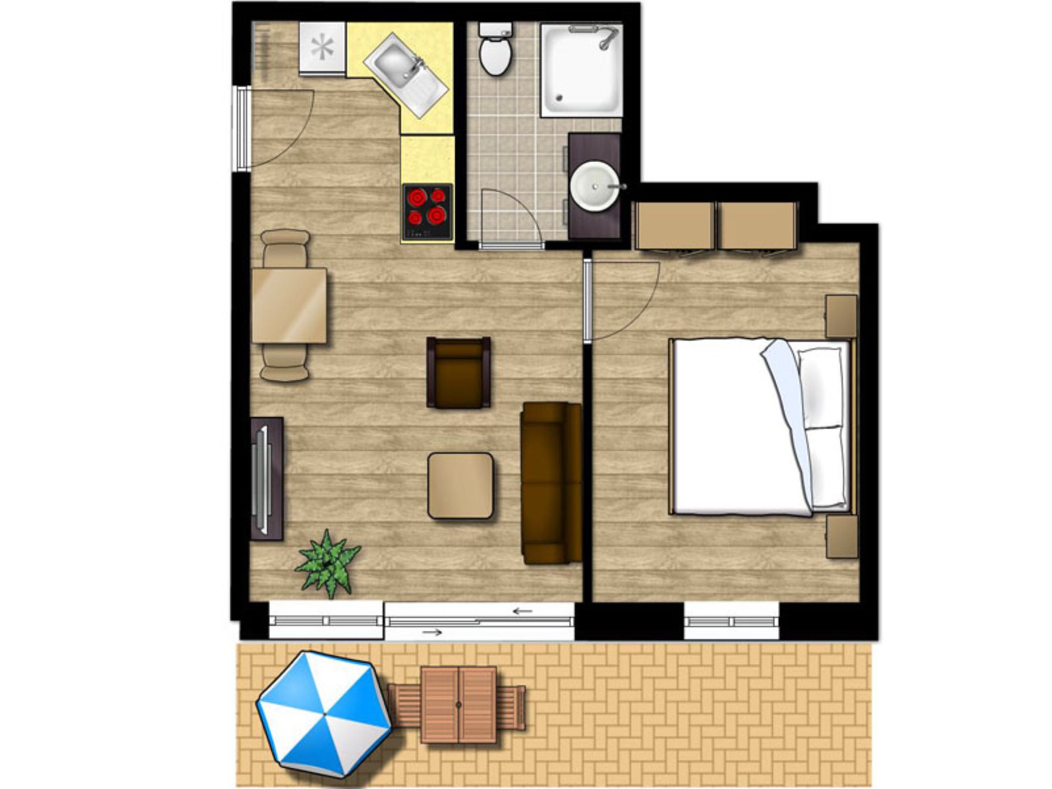 Die Suite verfügt über ein separates Schlafzimmer und eine Südterrasse mit Strandkorb.