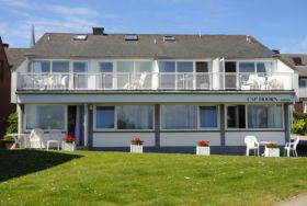 Das Gästehaus Cap Hoorn ist ein in vierter Generation geführtes Feriendomizil auf dem Oberland der Insel Helgoland. Das Haus liegt in erster Reihe (Norderfalm 326) am Felsen und alle Wohnräume bieten einen uneingeschränkten offenen Meeresblick. Die Entfernung zum Fahrstuhl beträgt ca. 2-3 Gehminuten. Im Erdgeschoss bieten wir ein großes und ein kleines Ferienappartement an. Die beiden Ferienwohnungen haben offenen freien Blick auf das Meer, was besonders in der großen Wohnung durch einen wunderschönen Panoramablick im Wohnzimmer zur Geltung kommt. Beide Wohnungen eignen sich besonders gut für Senioren und Familien mit Kindern.
