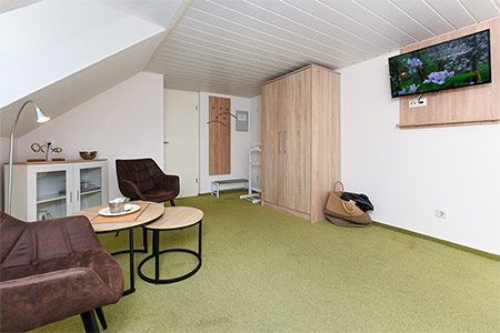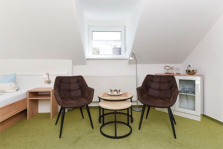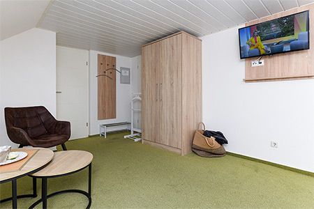 Am besten passen zwei bis drei Personen in die Doppelzimmer und Apartments. Zwei der Zimmer befinden sich in unserem Gästehaus, sind allergikergeeignet und verfügen über eigene Balkone.