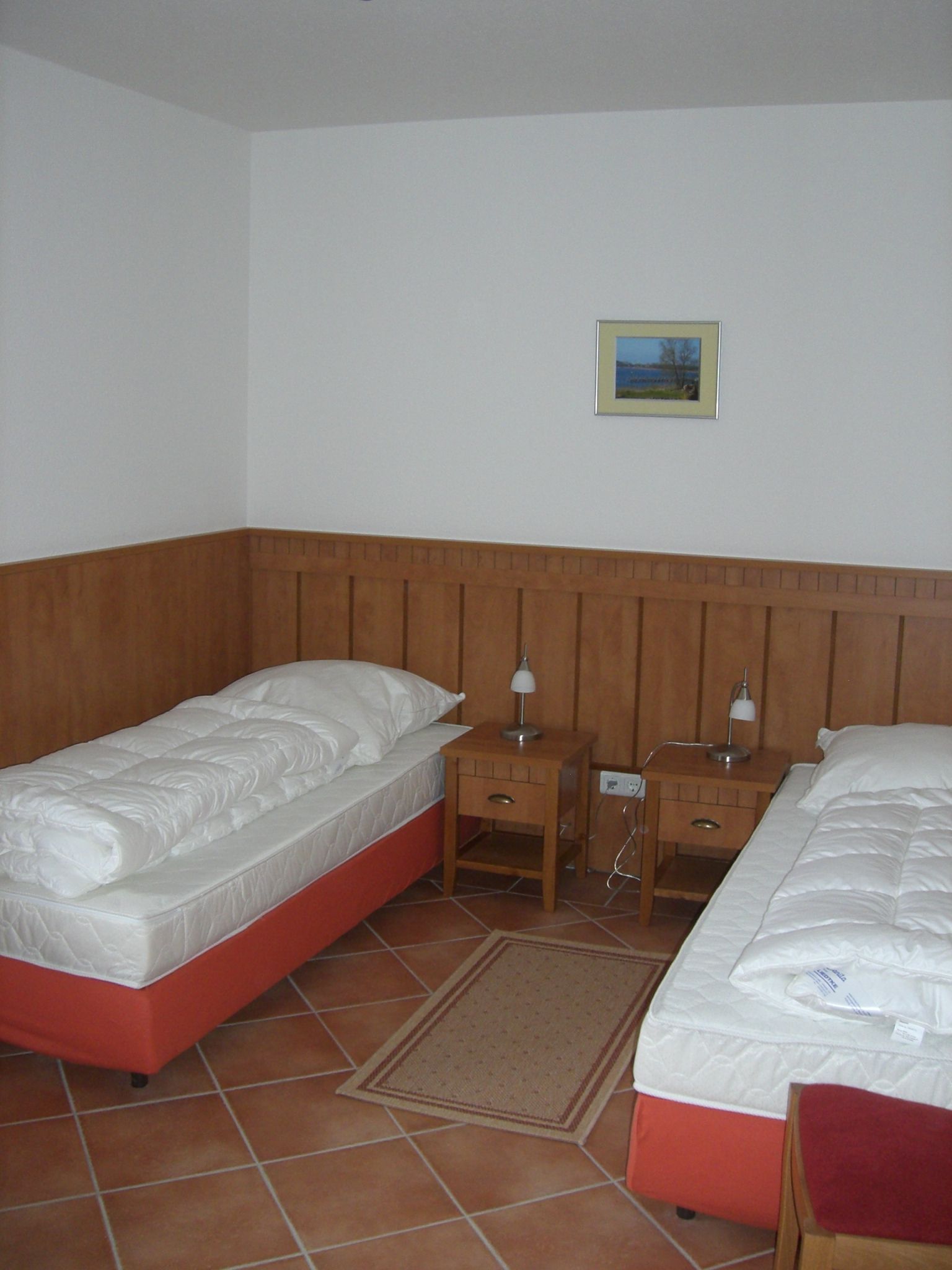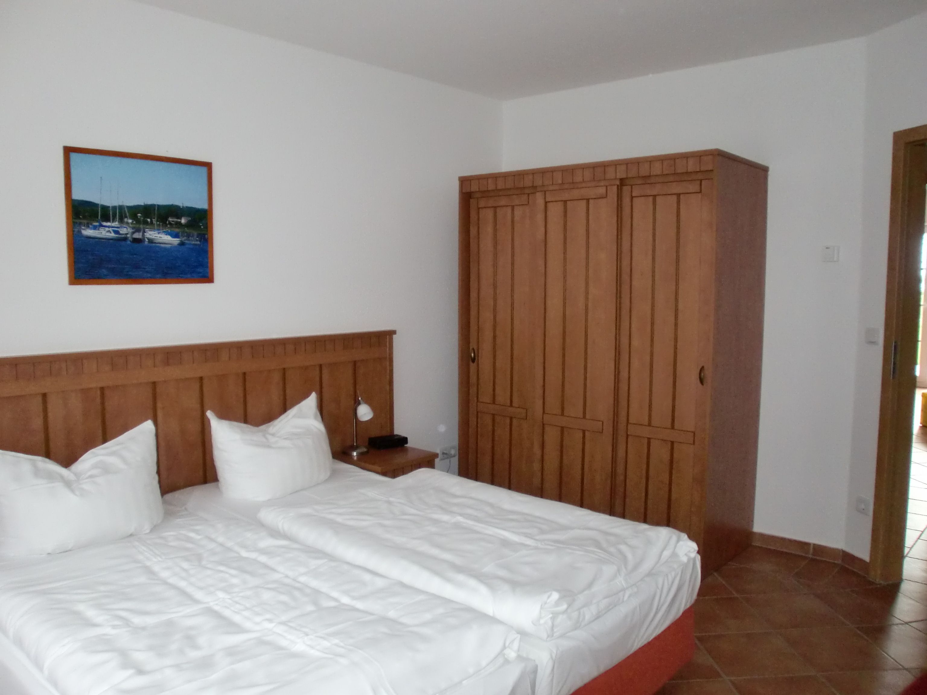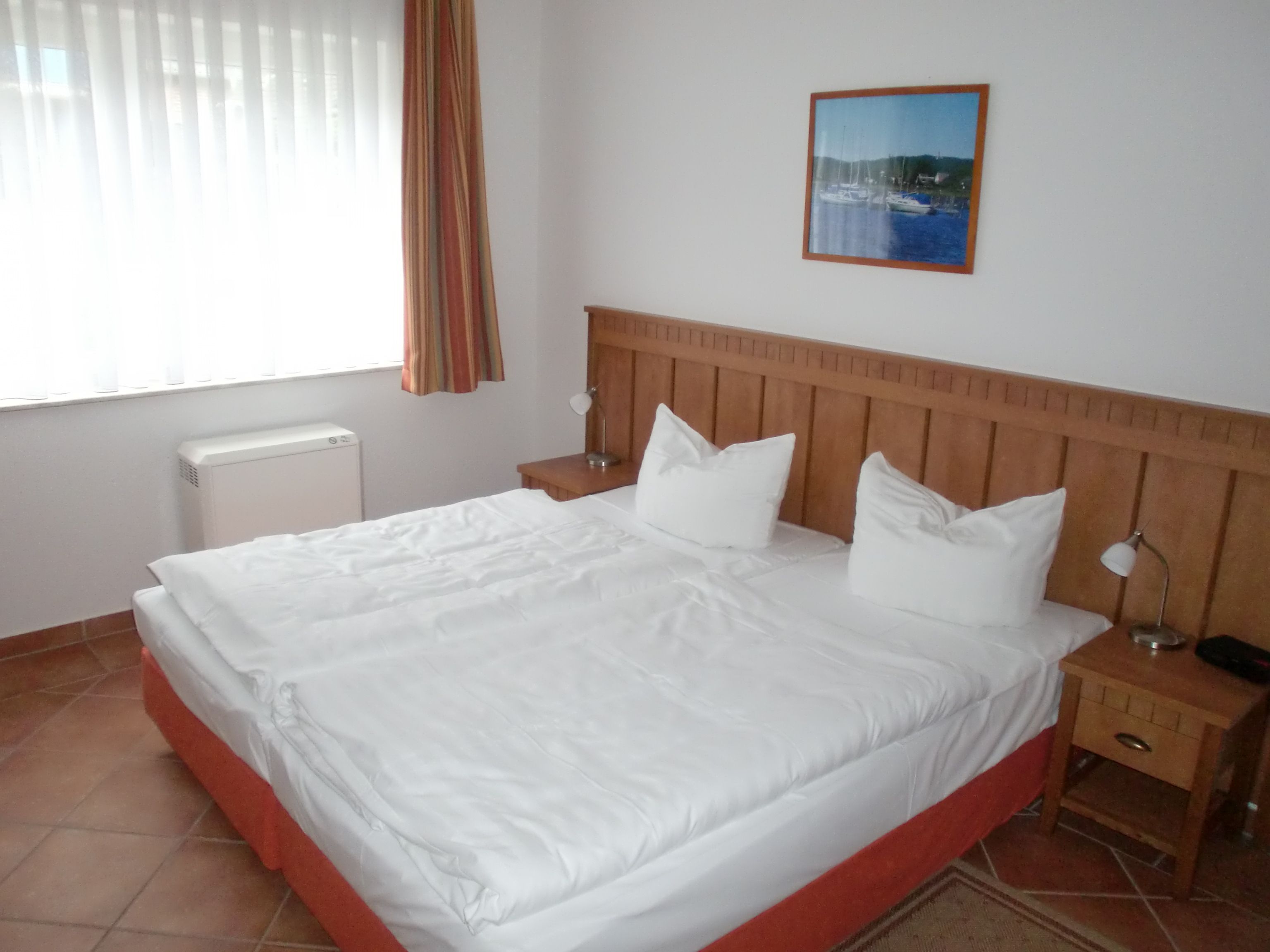 Die Nichtraucherwohnung mit ca. 77 qm besticht durch ihre komfortable Raumaufteilung. Die im Erdgeschoss liegende Ferienwohnung Nr. 7 bietet ausreichend Platz für 2-4 Personen + 2 Kinder bis 17 Jahre. Im Wohnbereich wird die Unterhaltungstechnik durch Gesellschaftsspiele, einen modernen 47 Zoll LCD-TV und ein CD bzw. DVD-Player abgerundet. Auch im Urlaub müssen Sie nicht auf einen Internetanschluss (W-LAN) verzichten. Dieser ist für Sie inklusive. Für die Gemütlichkeit wurde der Wohnbereich mit Massivmöbeln, Stehlampe, zwei Schlafcouchen (Aufbettungsmöglichkeit für 5./6. Person) und einem Sessel ausgestattet. Die bestuhlte große Terrasse mit einem Sonnenschirm können Sie vom Wohnbereich erreichen. Sie lädt bei einem Glas Wein zum Entspannen mit Blick auf den Selliner See ein. Die offene Küche ist mit Spülmaschine, Mikrowelle, Ceranfeld, Backofen, Kühlschrank mit Gefrierfach, Wasserkocher, Toaster, Kaffeemaschine, Radio und diversen Küchenutensilien ausgestattet. Beim morgendlichen Frühstück bzw. bei anderen Mahlzeiten können Sie vom Esstisch aus den Blick auf den Selliner See genießen. Das 1. Schlafzimmer ist mit 2 Einzelbetten, die als Doppelbett (1,80 m x 2,00 m) gestellt sind, sowie Nachttischablagen mit Schublade, einem Kleiderschrank, einem Ganzkörperspiegel, einer Kofferablage und einem modernen31 Zoll LCD-TV ausgestattet. Das 2. Schlafzimmer verfügt über 2 Einzelbetten (0,90 m x 2,00 m), die als Doppelbett gestellt werden können, sowie Nachttischablagen mit Schublade, einen Ganzkörperspiegel und einen Kleiderschrank. Im Tageslichtbad stehen Ihnen eine Badewanne, eine separate Dusche, ein großer Waschtisch, ein Haartrockner, ein WC und diverse Ablagen zur Verfügung. Fensterläden und Vorhängen dienen zum Verdunkeln der Räumlichkeiten. Im Abstellraum der Wohnung finden Sie einen Wäscheständer (für das Trocknen von Strandhandtüchern auf der Terrasse), Spielsachen für den Strand sowie Reinigungsutensilien. Für unsere kleinen Gäste kann ein Kinderreisebett (ohne Matratze und Bettinlet) und/oder ein Hochstuhl auf Anfrage kostenlos bereit gestellt werden. Haustiere sind in dieser Ferienwohnung nicht erlaubt. Ein PKW-Stellplatz befindet sich direkt auf dem Grundstück. Ihre mitgebrachten oder geliehenen Fahrräder können Sie nach Verfügbarkeit im abschließbaren Fahrradraum unterstellen. Die Erstausstattung eines Wäschepaketes können Sie bis 14 Tage vor Anreise kostenpflichtig dazu buchen bzw. durch Eigenmitnahme ergänzen.