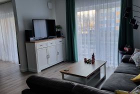 Moderne, neue Nichtraucher-Ferienwohnung für max. 4 (2+2) Personen nur 100m zum Yachthafen und 300m zum Ostseestrand mit großer Terrasse.