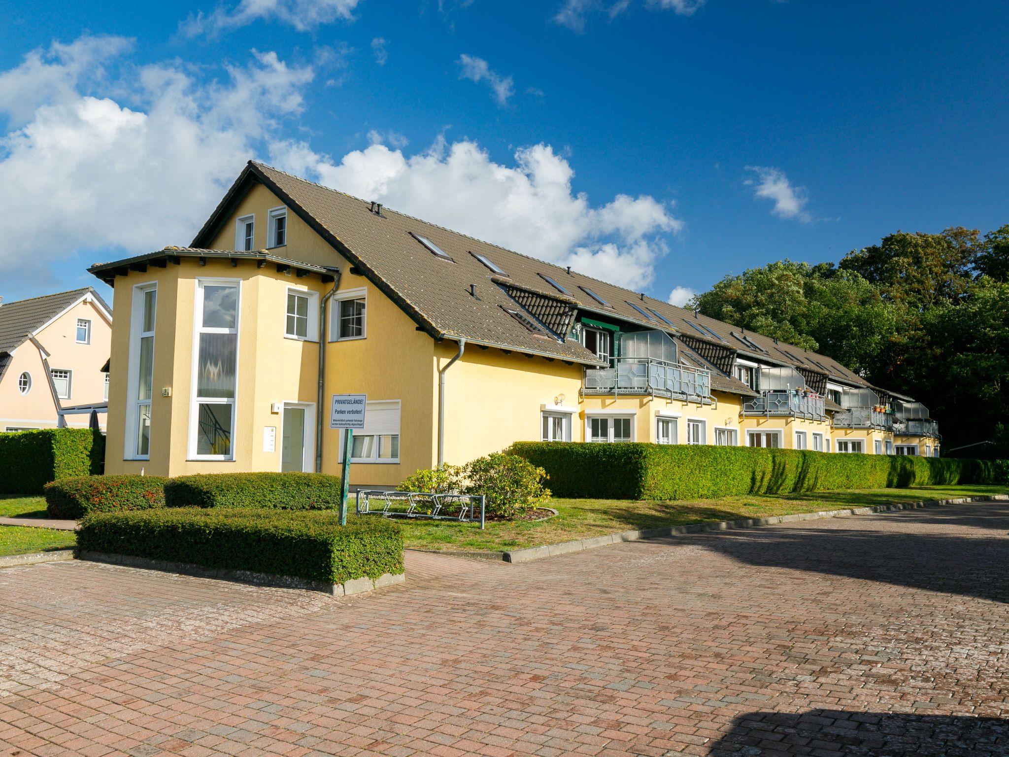 Appartementhaus auf 2 Stockwerken. Im Ort, 650 m vom Zentrum von Zinnowitz, vom Meer, 900 m vom Strand. Im Hause: Einstellraum für Fahrräder, Zentralheizung. Parkplatz auf dem Grundstück. Supermarkt 50 m, Restaurant 280 m, Bäckerei, Café, Bushaltestelle 500 m, Bahnstation, Sandstrand 900 m, Thermalbad Bernsteintherme 1.3 km. Jacht-Hafen 1.9 km, Golfplatz (18 Loch) 25 km, Surfschule 1.3 km, Tennis 800 m, Minigolf 1 km.