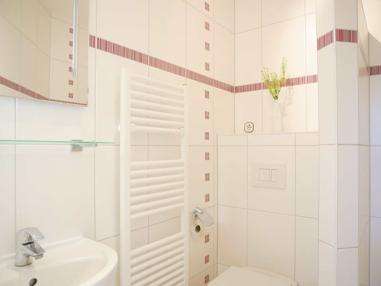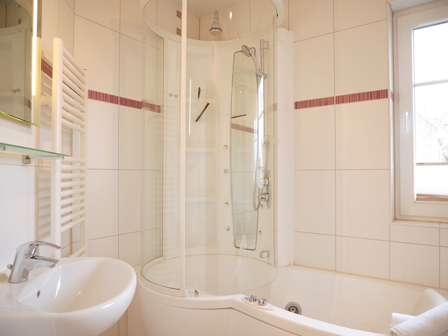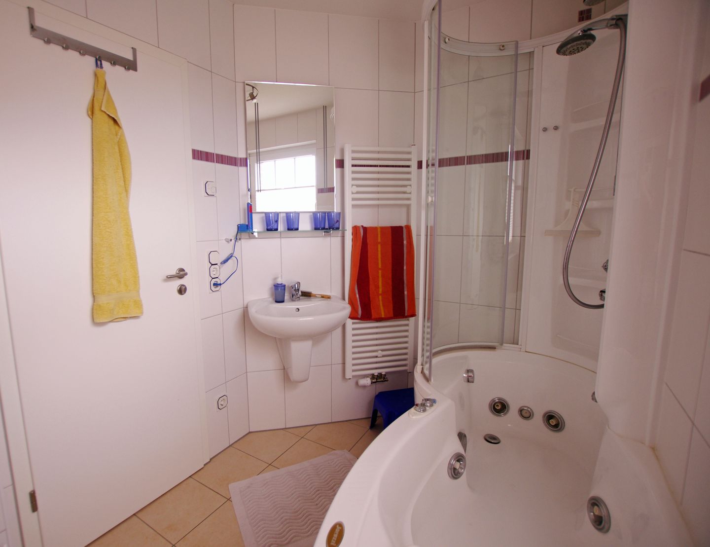 Das Ferienhaus verfügt über zwei Badezimmer, um den Komfort für alle Gäste zu gewährleisten. In einem der Bäder erwartet Sie eine entspannende Badewanne mit Whirlvorrichtung, während das andere Badezimmer mit einer ebenerdigen Dusche ausgestattet ist.