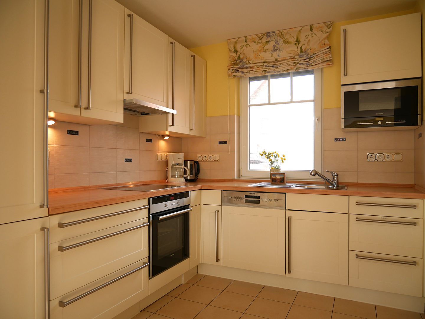 Die offene Küche ist bestens ausgestattet und verfügt über einen Kühlschrank, einen Herd, einen Backofen, eine Mikrowelle, eine Kaffeemaschine, einen Wasserkocher und einen Toaster sowie alle notwendigen Küchenutensilien.