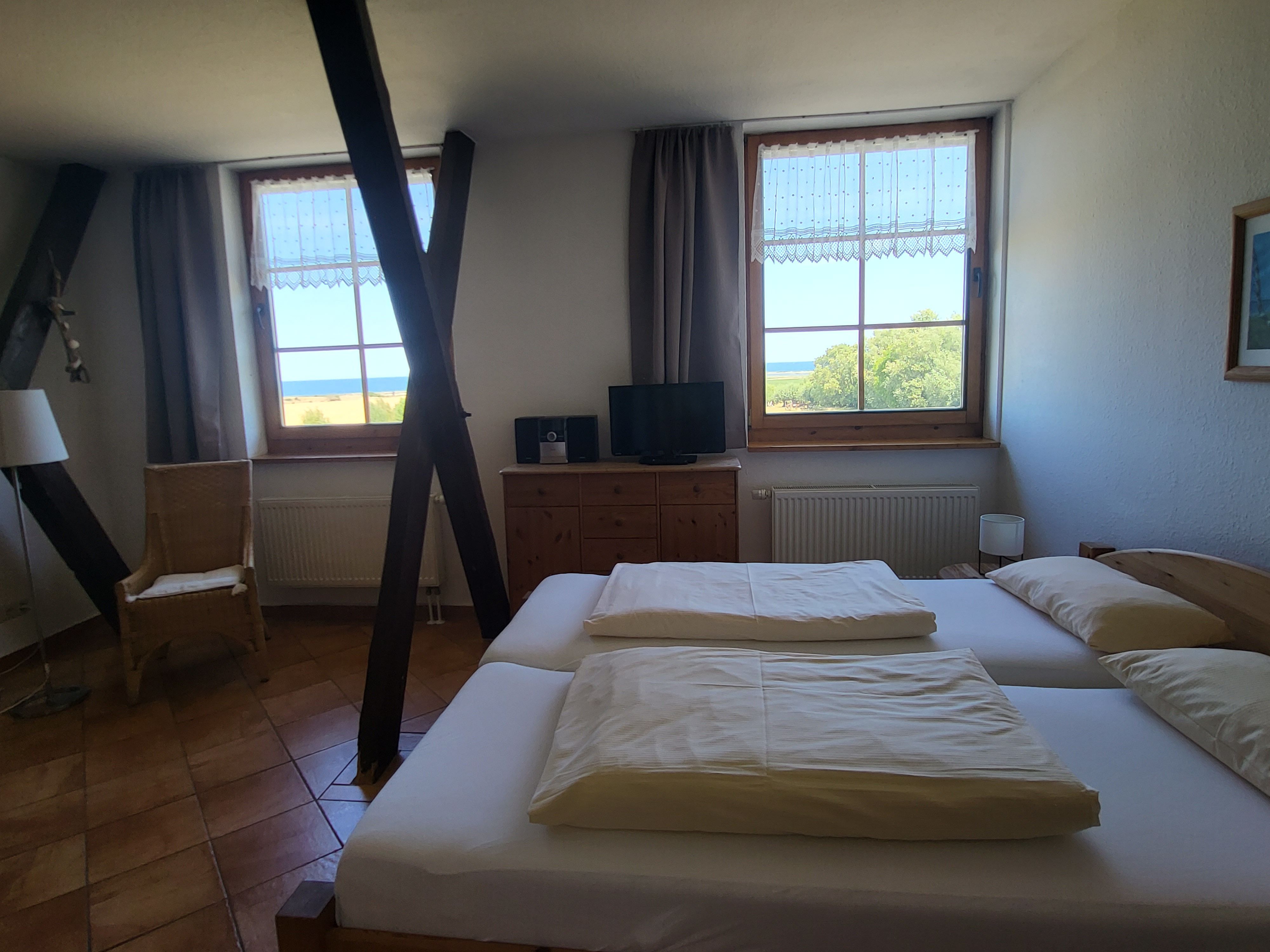 Die 1-Zimmer-Appartement sind seeseitig im Obergeschoß und 32 qm groß.