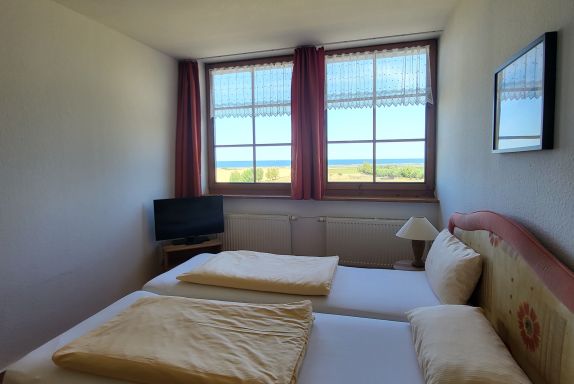 Die 2-Zimmer-Appartements sind seeseitig im Obergeschoß, mit separatem Kinderzimmer und 32 bis 50 qm groß. Das Kinderzimmer hat Teppichboden.