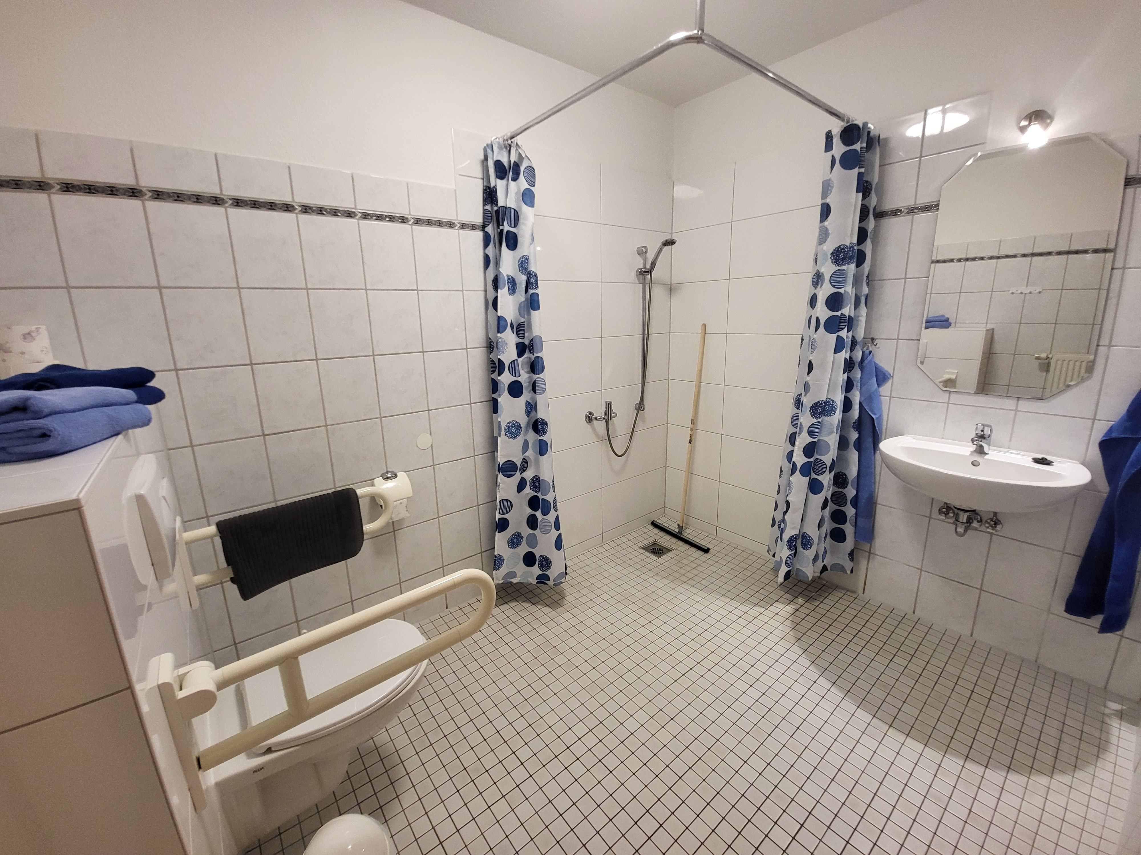 In diesem 55 qm großen, rollstuhlgerechten Appartement gibt es eine ebenerdige Dusche und eine Rampe zur Terrasse. Das Appartement befindet sich im Erdgeschoß, verfügt über eine Terrasse, ein separates Schlafzimmer und ein Schlafsofa im Wohnzimmer.