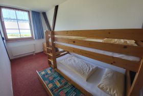 Die 2-Zimmer-Appartements sind seeseitig im Obergeschoß, mit separatem Kinderzimmer und 32 bis 50 qm groß. Das Kinderzimmer hat Teppichboden.