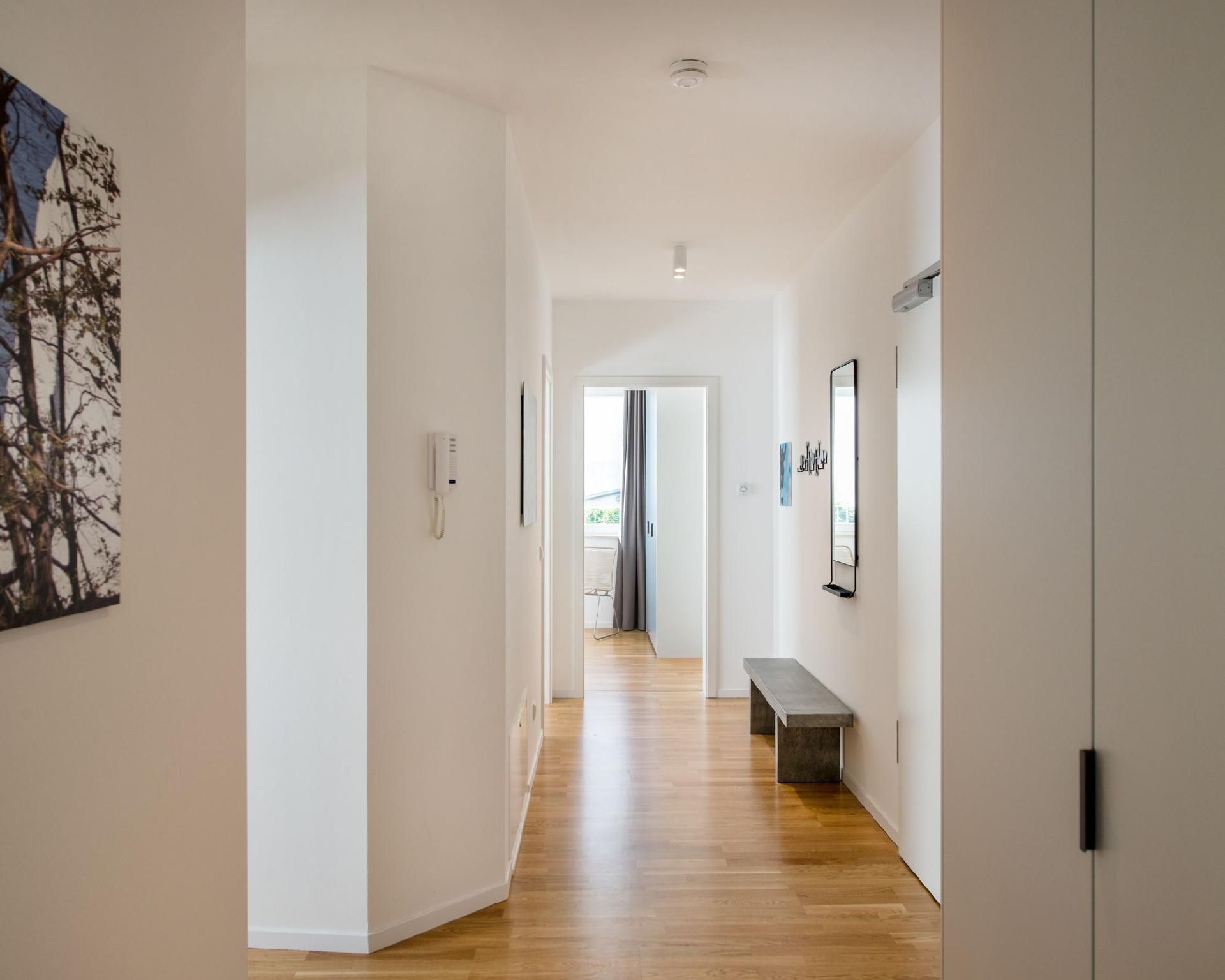 Diese Wohnung liegt im Erdgeschoss des Strandhauses. Die Wohnung für vier bis sechs Personen mit einer Wohnfläche von 87 m² ist sehr hochwertig mit ausgewählten Design-Möbeln eingerichtet und verfügt über drei Zimmer. Im 34 m² großen Wohnzimmer mit Sony-Flachbildfernseher und offener Küche können Sie nach einem erlebnisreichen Tag entspannen. Das Schlafsofa (180 x 200 cm) bietet die Möglichkeit einer Aufbettung für zwei Personen. Hochwertige Siemens-Geräte und eine Komplettausstattung in der Küche machen das Kochen im Urlaub zum Vergnügen. Der Esstisch befindet sich direkt vor der Küchenzeile. In den beiden großzügigen Schlafzimmern mit jeweils einem Doppelbett (180 cm breit) können Sie entspannt schlafen. Das moderne Tageslichtbad mit Badewanne, Dusche und WC sorgt für einen beschwingten Start in den Tag. Des Weiteren gibt es ein separates Gäste-WC. Die Böden der Ferienwohnung sind aus hochwertigem Eichenparkett.