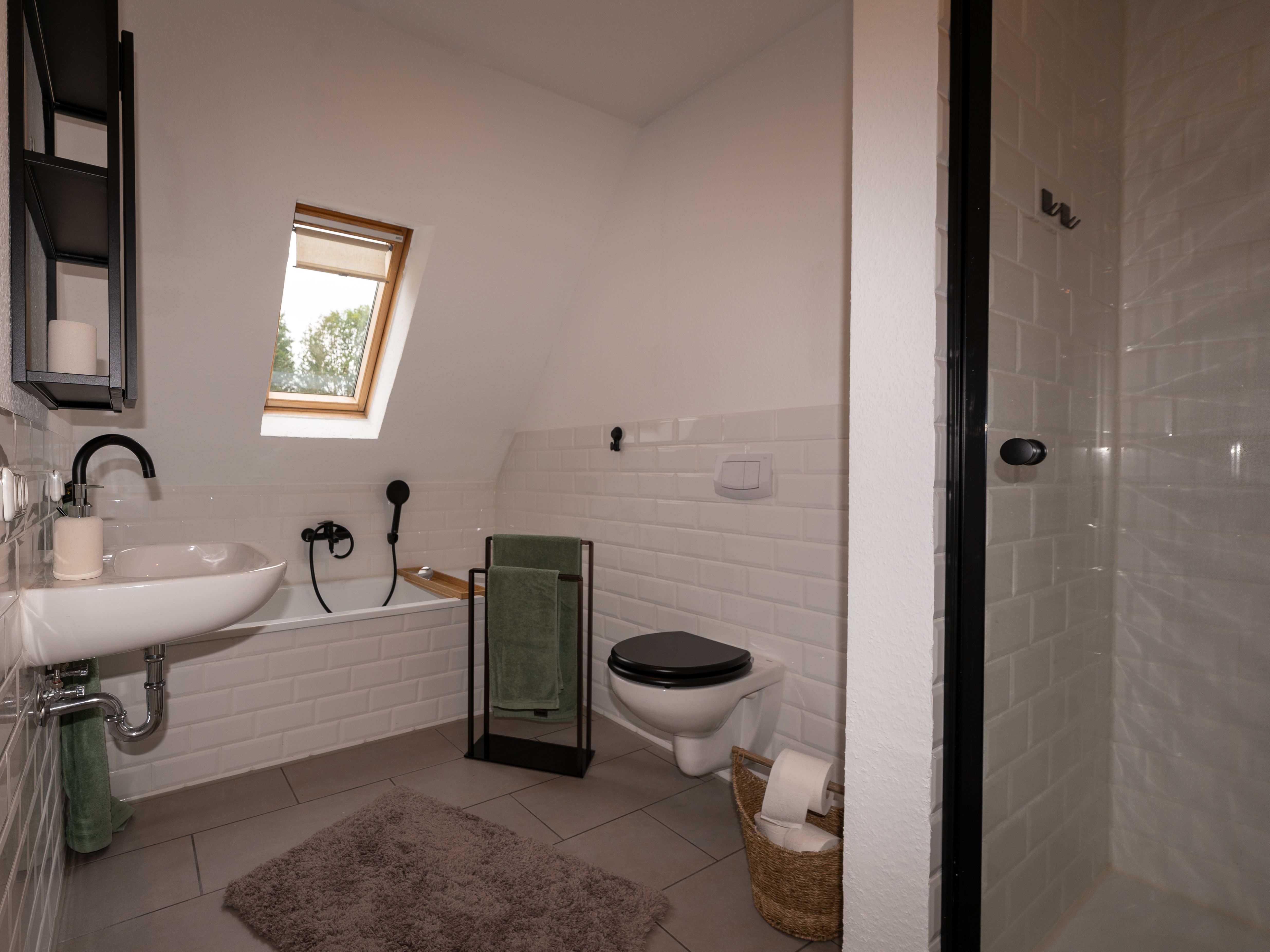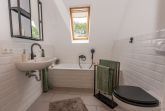 Weiterhin befindet sich im ersten Stock ein modernes Badezimmer mit Badewanne, Dusche und WC.