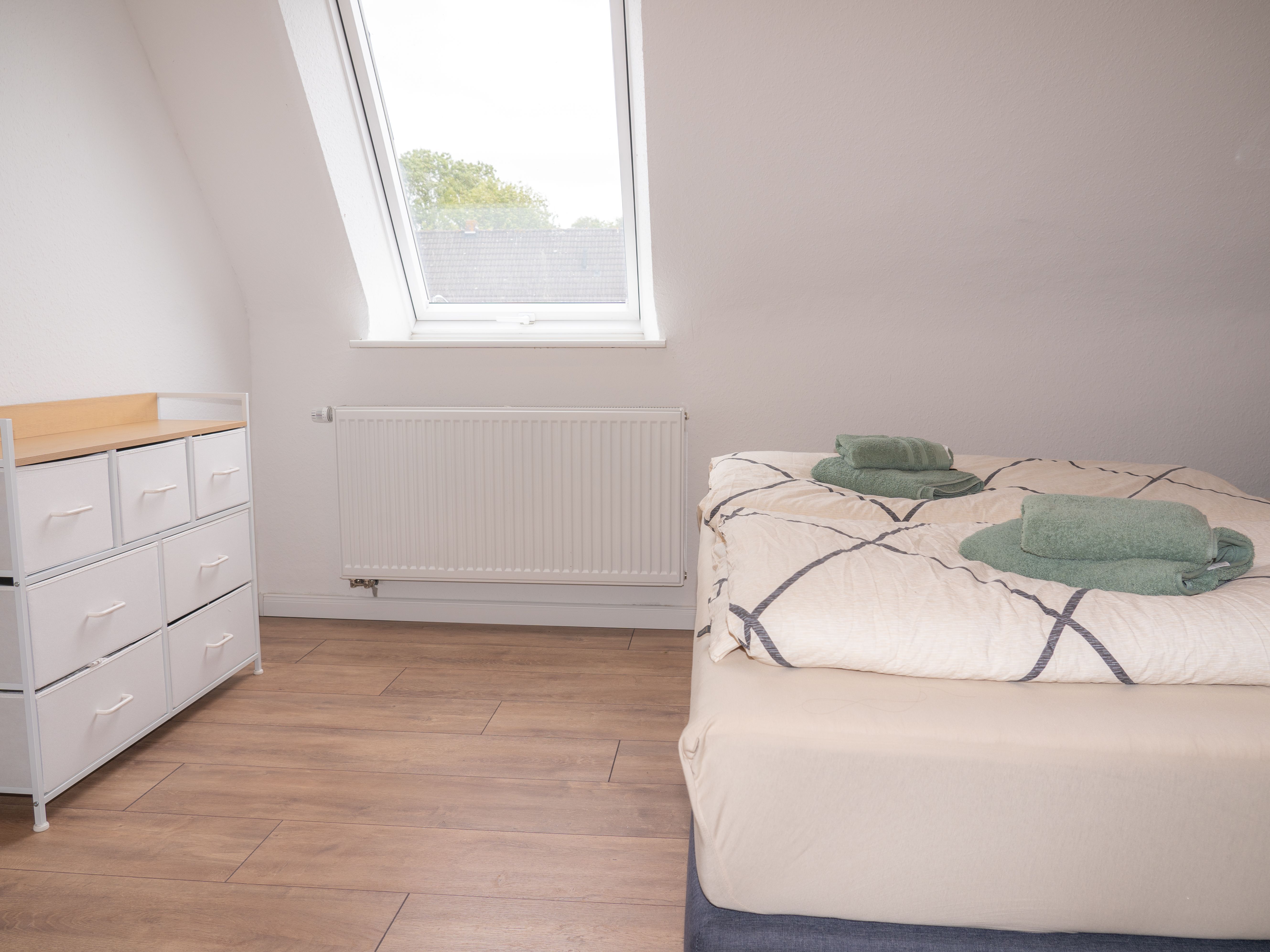 Eine Siedlungshaushälfte für die ganze Familie mit viel Platz zum Entfalten! Zu der Unterkunft, die 2022 komplett saniert wurde, gehört ein gemütliches Wohnzimmer mit Essplatz für 4 Personen, eine offene Küche mit Tresen und zwei Sitzplätzen und ein Eingangsflur mit angrenzendem Gäste WC. In der 1. Etage befindet sich ein Schlafzimmer mit Doppelbett 1.80 m x 2.00m und ein kleines Zimmer mit einem komfortablen Bettsofa mit einer Liegefläche von 1.40m x 2.00m. Ein Topper liegt auch hier bereit.