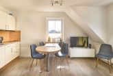 Das helle Duschbad/WC sorgt dafür, dass Sie morgens frisch und munter in den Tag starten können. Der Wohnbereich ist mit einem Zugang zum Balkon ausgestattet und lädt zum Entspannen und Fernsehen ein. Der angrenzende Essbereich verfügt über eine komfortable Einbauküche, in der Sie Ihre Lieblingsspeisen zubereiten können. Auf dem Balkon können Sie die Sonne genießen und die Urlaubstage in vollen Zügen auskosten.
