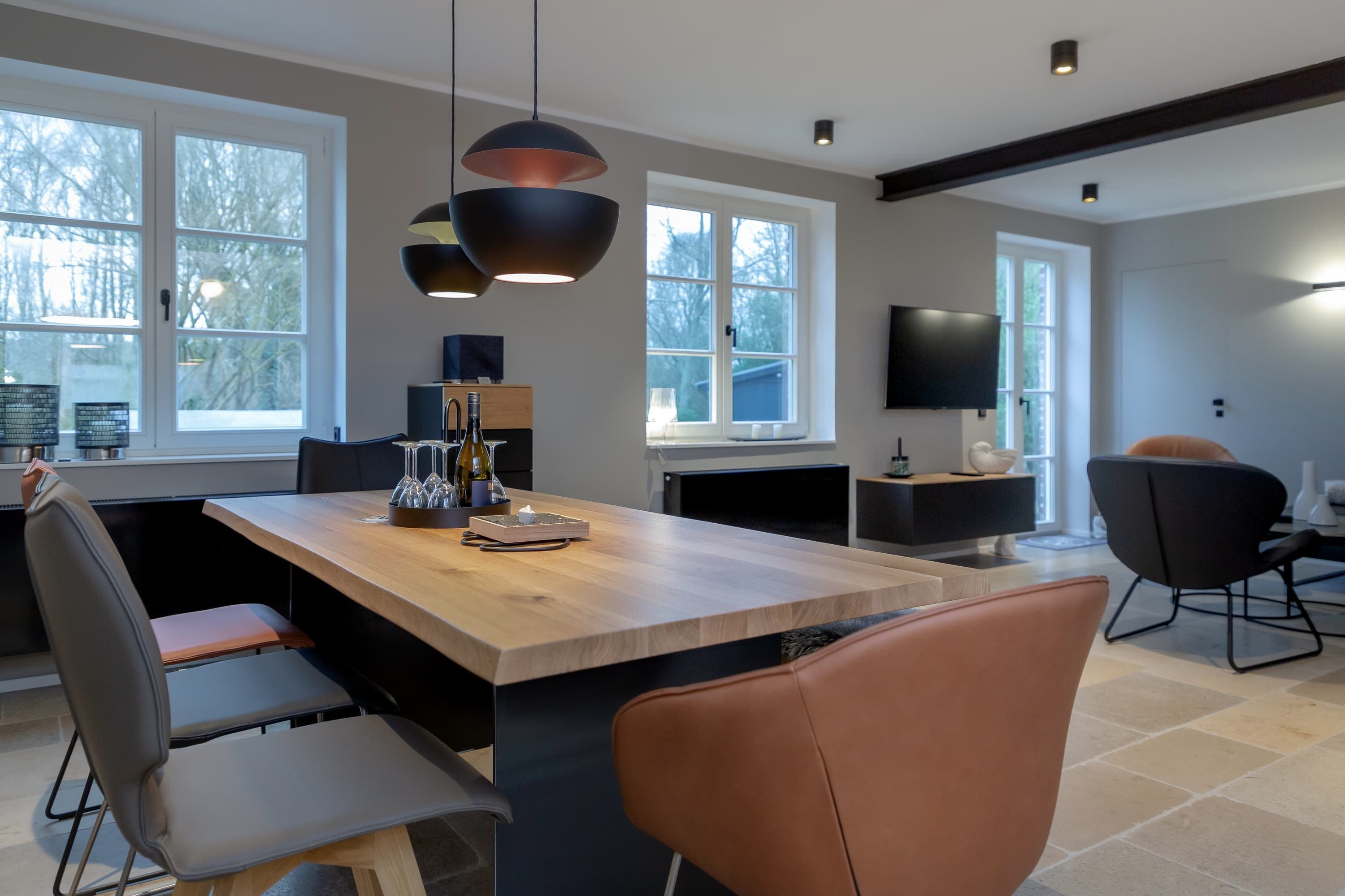 Das Haus am Buttgraben ist für bis zu 6 Personen geeignet und befindet sich in ruhiger Lage nahe dem Lister Ellenbogen, dennoch gelangt man sehr schnell fußläufig ins Zentrum von List sowie an den Lister Hafen. Ein rundum modernes Haus zum Wohlfühlen. Der großzügige Garten mit Terrasse lädt zum entspannten verweilen ein. Der großzügige Wohnraum mit Kamin und seiner modernen Küche gehören zu den vielen Qualitäten dieser modernen Doppelhaushälfte. Die offene Küche mit Weinkühlschrank ist mit allen technischen Geräten ausgestattet und lässt keine Wünsche offen. Insgesamt verfügt das Haus über ein Schlafzimmer mit Doppelbett mit Bad en Suite. Die anderen beiden Schlafzimmer verfügen über getrennt stehende Einzelbetten. Ein weiteres Duschbad mit WC und eine Gästetoilette sind im Erdgeschoss vorhanden.