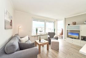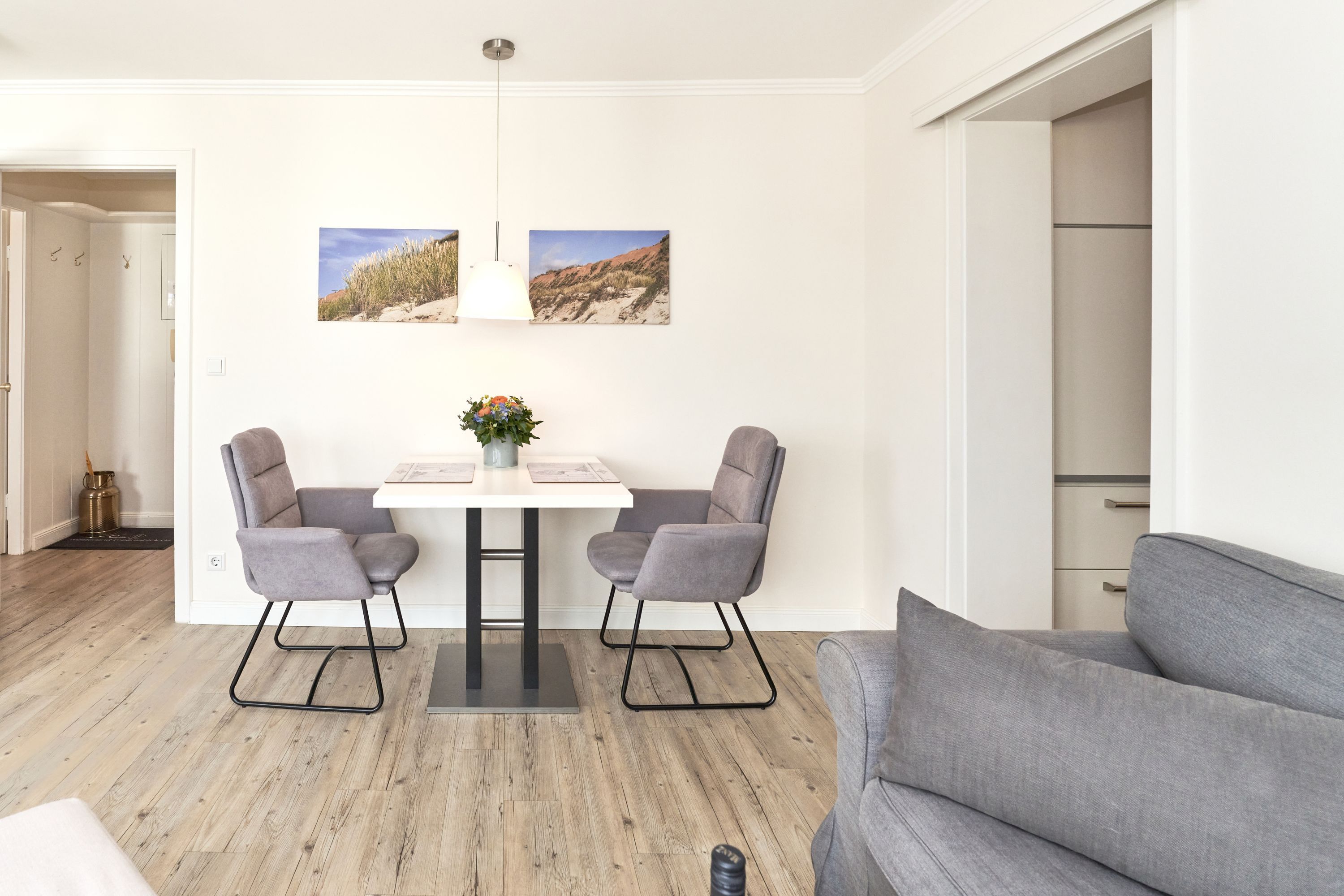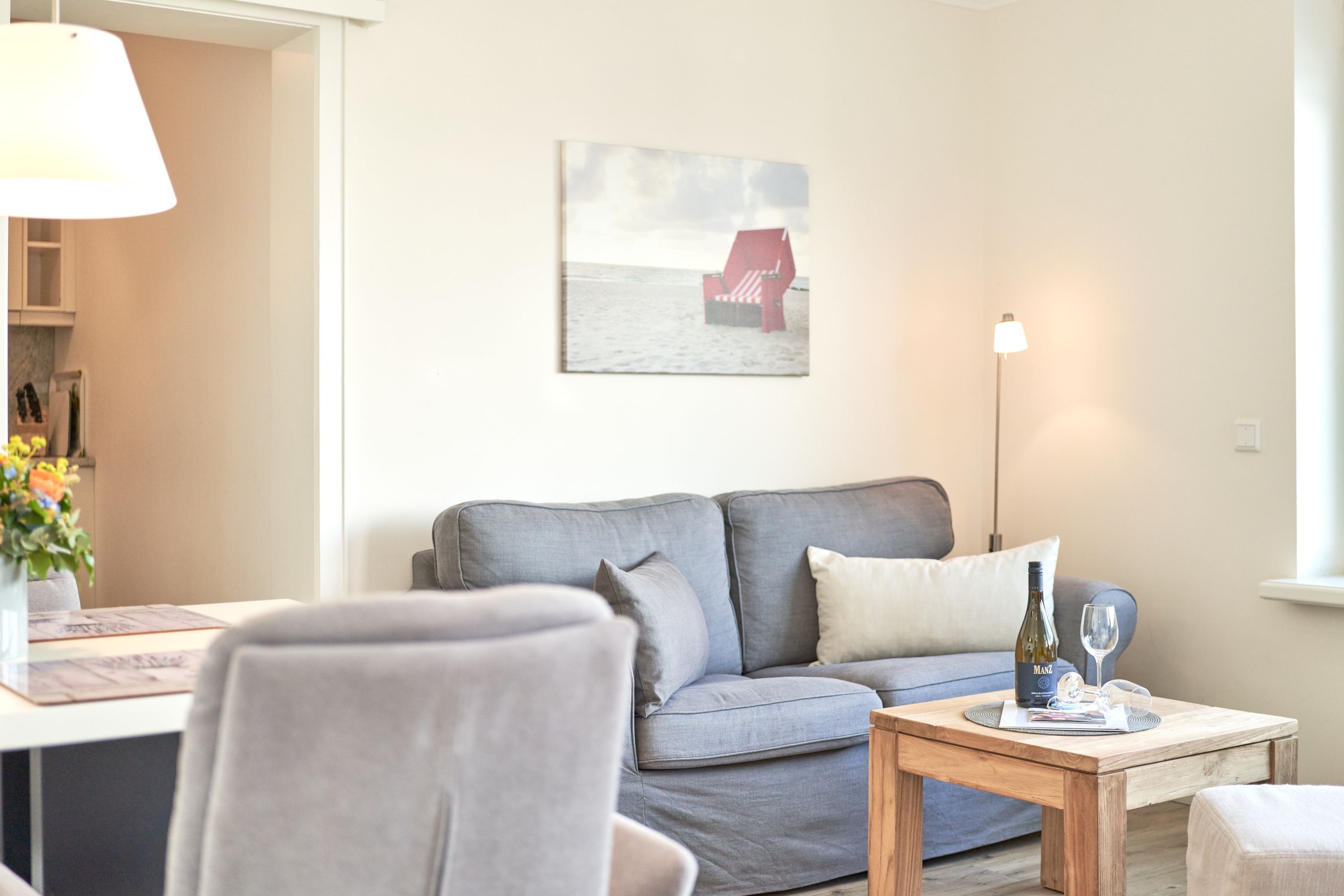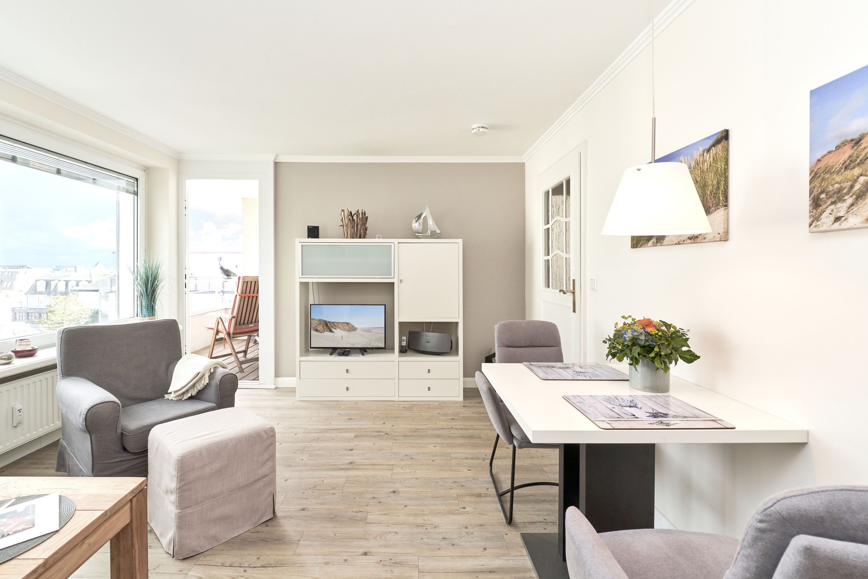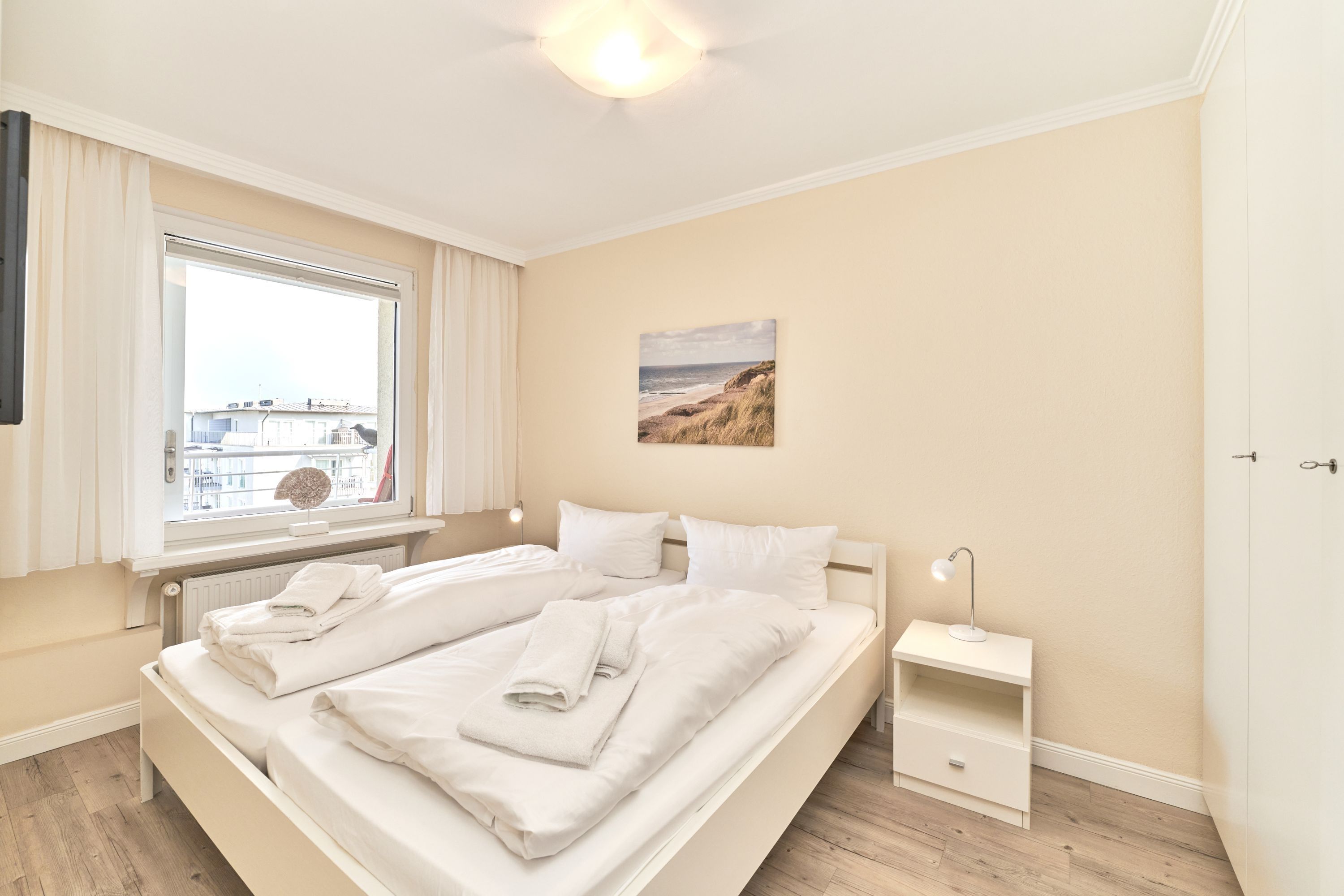 Am Haus Sola Bona parken Sie direkt und kostenlos, ein Aufzug bringt Sie bis auf Ihre Etage. Somit beginnt der schon mal Urlaub entspannt. Das schöne Wohnzimmer mit seinem Essbereich verfügt über einen Flat-TV, eine Sitzgruppe mit Sessel, sowie einen Couchtisch und direkten Zugang zum Balkon, von welchem Sie einen Blick nach Osten zur Keitumer Kirche haben. Liebevoll und im Detail aufeinander abgestimmt ist die Ferienwohnung eingerichtet. Das Schlafzimmer verfügt über ein Doppelbett mit 2 Nachttischschränkchen sowie einen großen Einbauschrank und ist mit Parkettboden ausgelegt. Das freundliche Badezimmer mit Dusche und WC, ist komplett ausgestattet und steht Ihnen für Ihre morgendliche Erfrischung zur Verfügung.