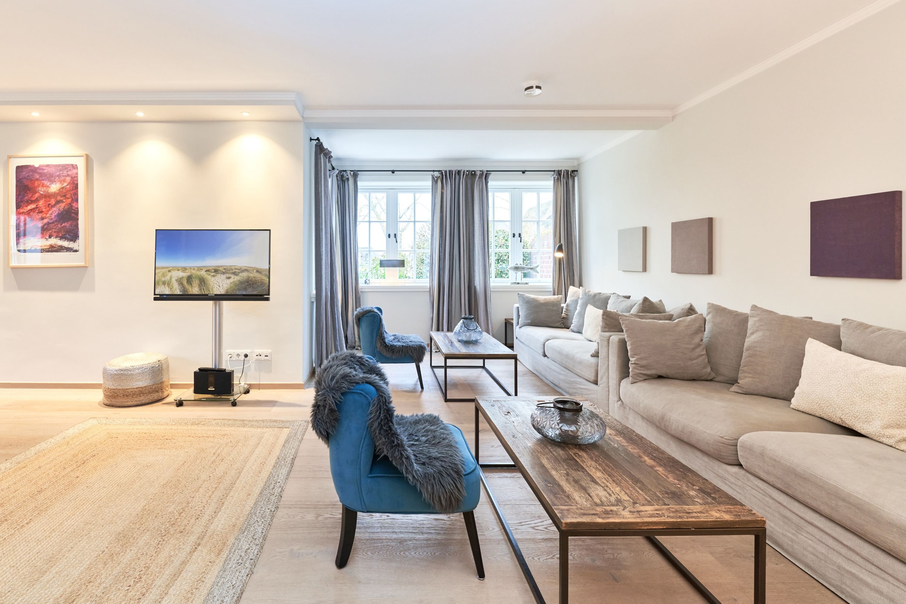 Das Haus Silbermöwe unter Reet liegt in ruhiger Lage von List und lässt keine Wünsche offen. Im Erdgeschoss befindet sich der großzügige Wohn und Essbereich mit Kamin sowie eine gemütliche Sitzecke zum chillen. Die moderne Küche mit allen technischen Geräten sowie ein separates Gäste - WC befinden sich ebenfalls auf dieser Ebene. Das Obergeschoss verfügt über ein Masterschlafzimmer mit Schrankeinbauten und angrenzenden Wannenduschbad mit WC, ein weiteres Schlafzimmer mit Doppelbett und Duschbad mit WC sind ebenfalls vorhanden. Im Dachgeschoss befindet sich ein schönes Spielzimmer für Kids mit Fernseher und separaten Duschbad mit WC. Im Untergeschoss befindet sich ein weiteres Schlafzimmer mit Doppelbett und Fernseher sowie der Saunabereich mit Dusche und WC . Ein weiterer Ruheraum mit Fitnessgerät steht den Gästen ebenfalls zur Verfügung. Ein erholsamer Wohlfühlurlaub ist Ihnen garantiert. Das Haus verfügt ab dem 01.01.2024 über eine E- Auto- Ladestation am dazugehörigen Parkplatz am Haus.