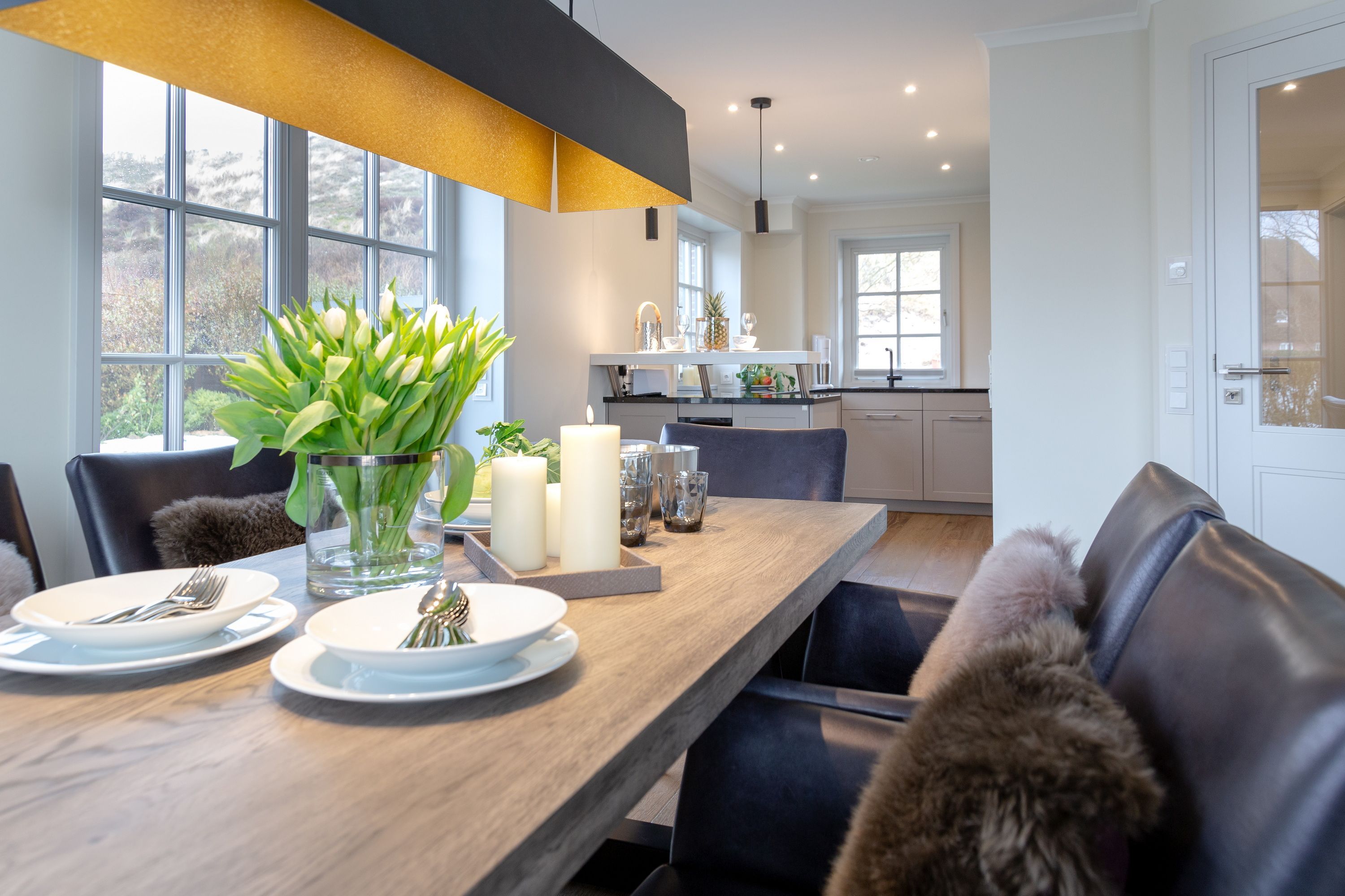 Eine Perle Lister Urlaubskultur: Das Haus Süderhörn ist gerade neu erbaut. Die Farben der Natur und das hochwertige Interieur versprechen einen erholsamen Urlaub in List auf Sylt. Das Ferienhaus Süderhörn ist ein Haus unter Reet für bis zu 6 Personen, das Sie mit dem coolen Mix aus modernen Holzeinbauten und edlen Materialien begeistern wird. Der Wohnbereich mit Kamin sowie der große Esstisch versprechen gemütliche Abende oder kulinarische Tafelfreunden, diese lassen sich in der perfekt und hell gestalteten Küche zubereiten dazu ein guter Wein aus dem Weinkühlschrank mehr geht nicht und ein Thermomix ist auch vorhanden. Im Ober- und Untergeschoss geht es ruhiger zu , denn hier wird geschlafen und entspannt. In zwei Schlafzimmern (Obergeschoss) bzw. einem Schlafzimmer (Untergeschoss), die sich stilvoll in ihren Farben präsentieren. Das Elternschlafzimmer verfügt über ein Fernseher sowie ein perfekt ausgestatteten begehbaren Kleiderschrank.Das Haus verfügt insgesamt über drei Duschbäder eines davon mit Badewanne sowie eine geräumige Sauna , ein Gäste WC , Hauswirtschaftraum mit Waschmaschine und Trockner sind ebenfalls vorhanden.