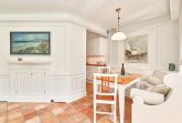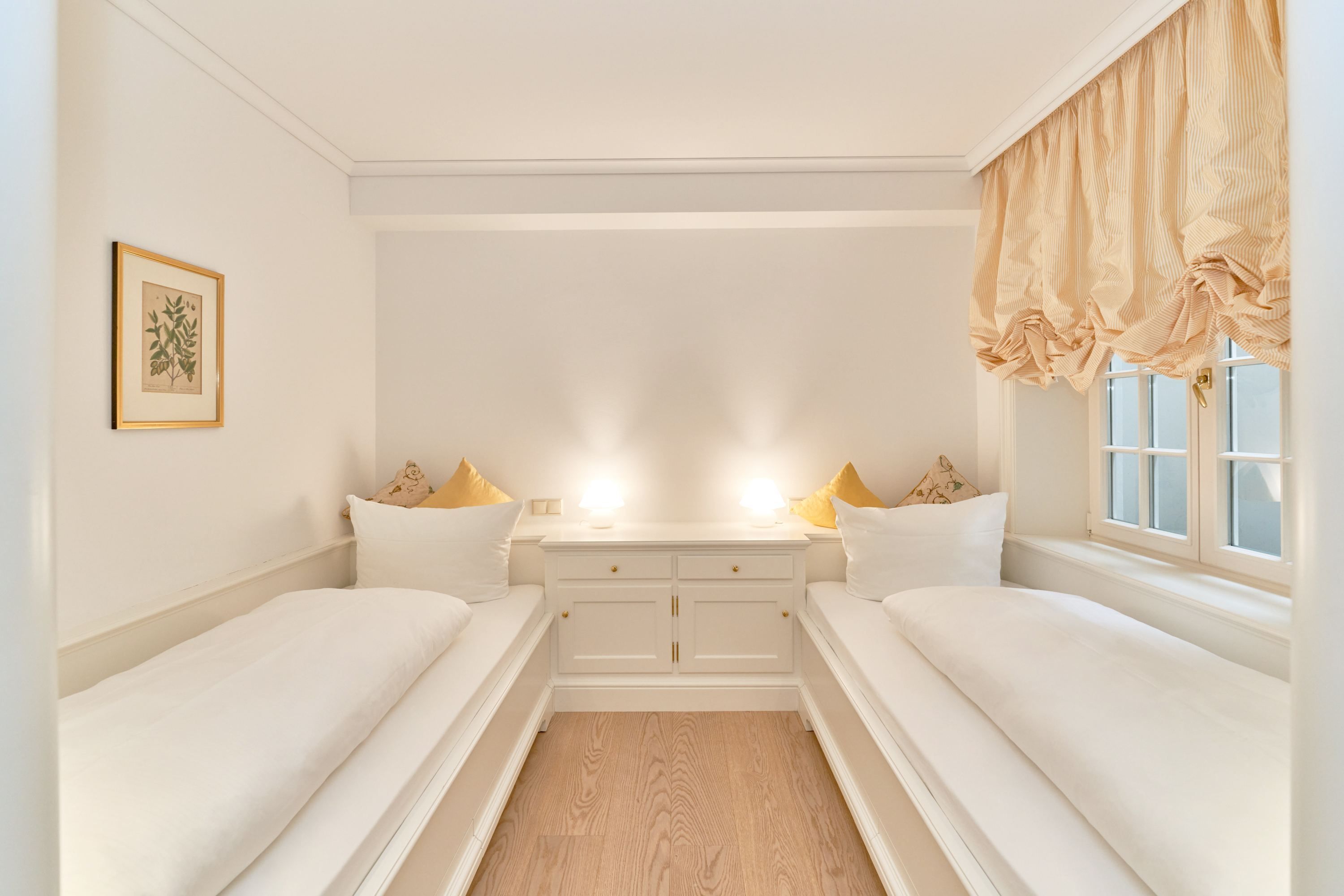 Das Erdgeschoss verfügt über ein Wohn-, und Essbereich sowie eine halboffene Küche. Der gesamte Wohn und Essbereich hat lichtdurchflutete Fenster und einen Zugang zur Südterrasse. Im Obergeschoss befindet sich das Hauptschlafzimmer mit großzügigem Bad mit Dusche und Wanne sowie ein weiteres kleines Schlafzimmer und ein separtes Ankleidezimmer. Im Untergeschoss befinden sich zwei geräumige Schlafzimmer mit jeweis einem Doppelbett und zwei getrennten Einbaubetten sowie ein modernes Duschbad mit WC.