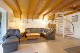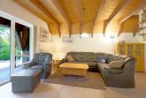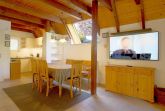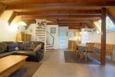 Der Wohnbereich mit Kaminofen, großem Flat-TV und kostenlosem Internet bietet genügend Platz für die Familie.