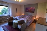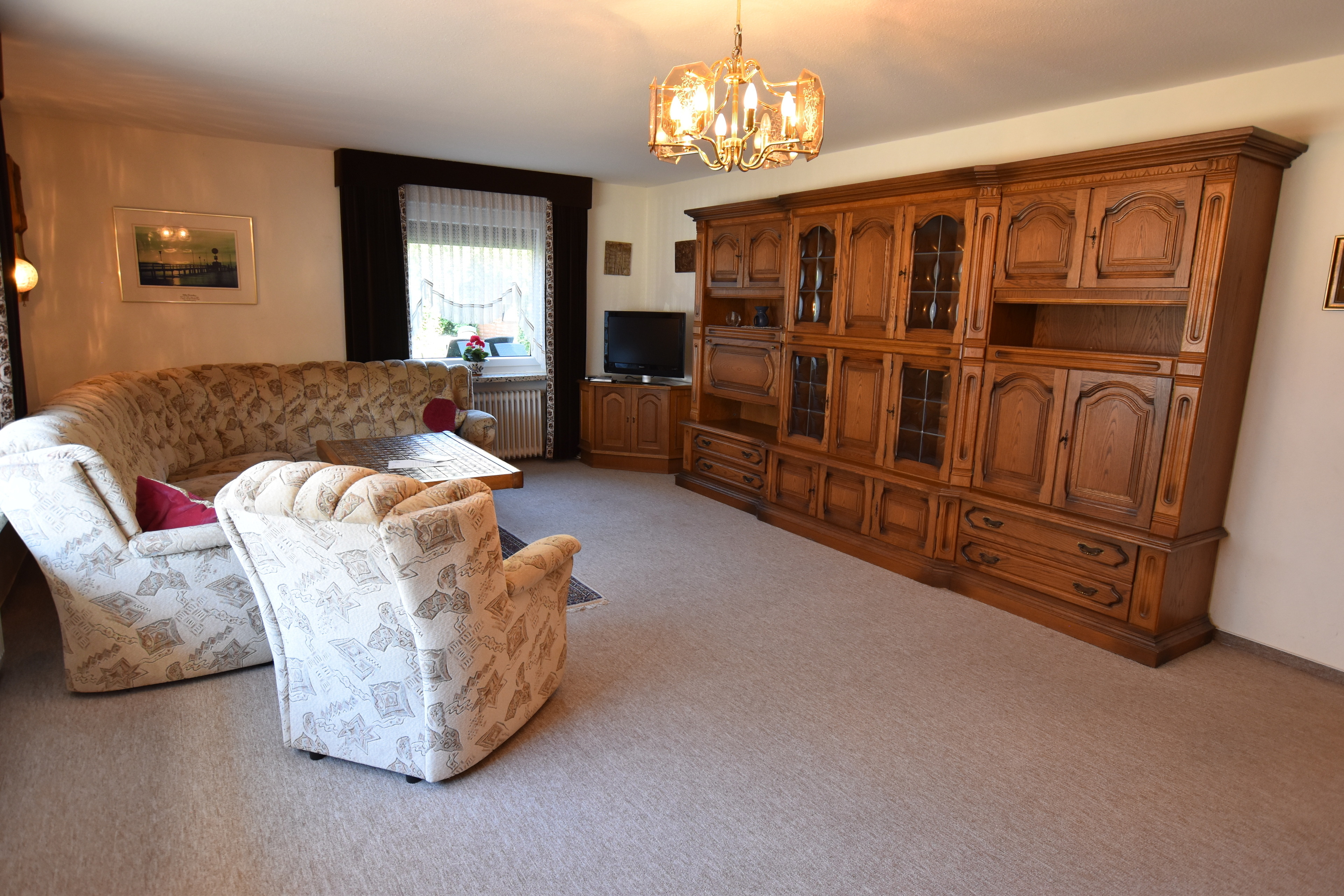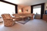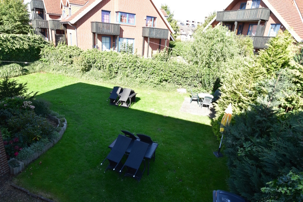 Unsere Ferienwohnung 3 liegt komplett im Erdgeschoss und bietet auf 120 qm bis zu 6 Erwachsenen und 1 Kind mit Babybett ausreichend Platz. Neben 2 Schlafzimmern mit Doppelbett und 2 Einzelbetten verfügt das Wohnzimmer zusätzlich bei Bedarf auch über ein Schrankbett, in dem zwei weitere Erwachsene schlafen können. Die max. Personenzahl von 6 Personen darf jedoch nicht überschritten werden.In der separaten Küche finden Sie auch das Esszimmer mit Sitzecke und zusätzlichem Esstisch. Weiterhin verfügt die Wohnung über zwei Bäder, einmal mit Dusche und einmal mit Badewanne sowie eine weitere Gästetoilette. Ebenso gehört zur Wohnung ein Garten mit Liegewiese, Terrasse sowie Gartenstühlen.