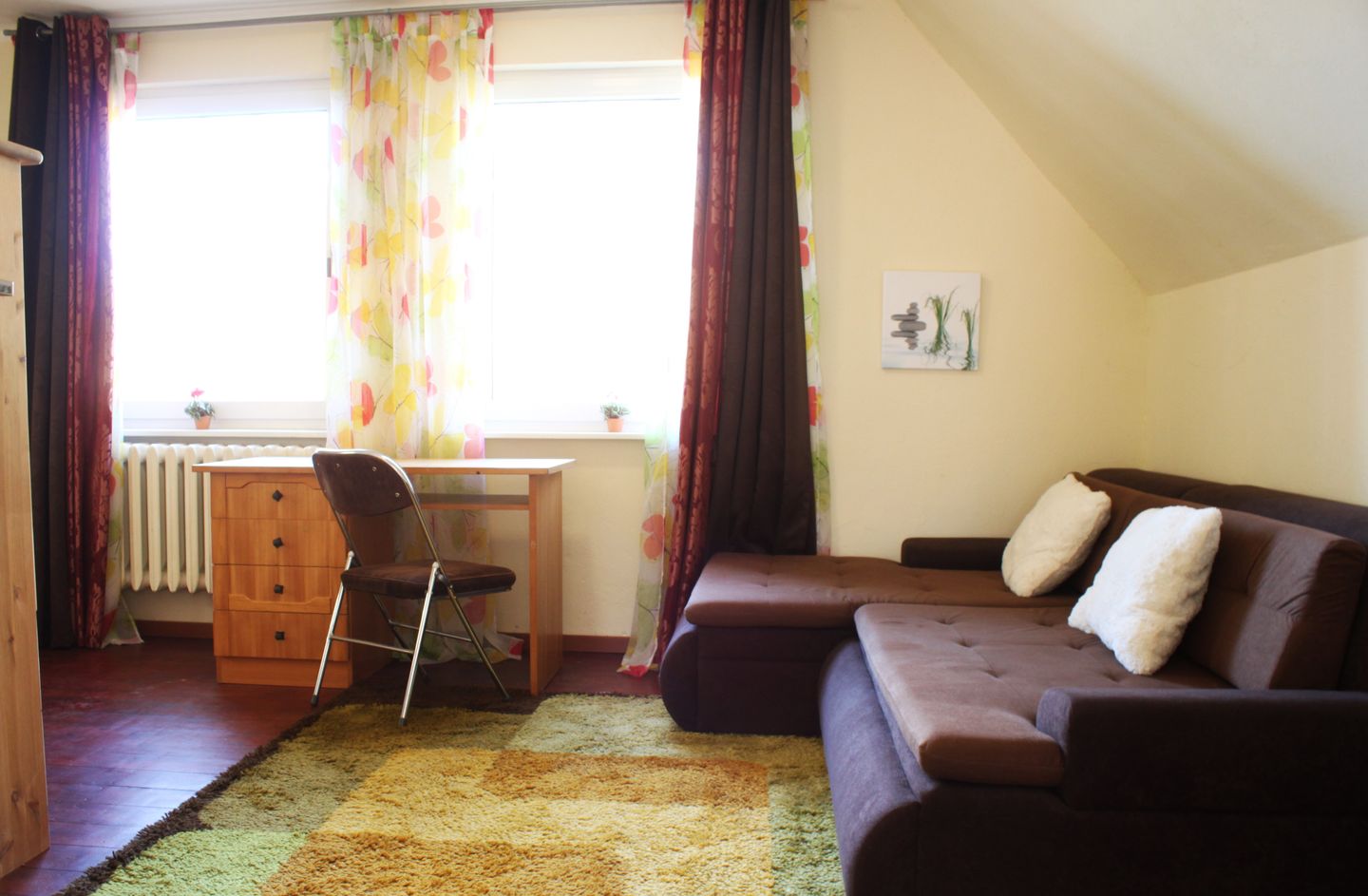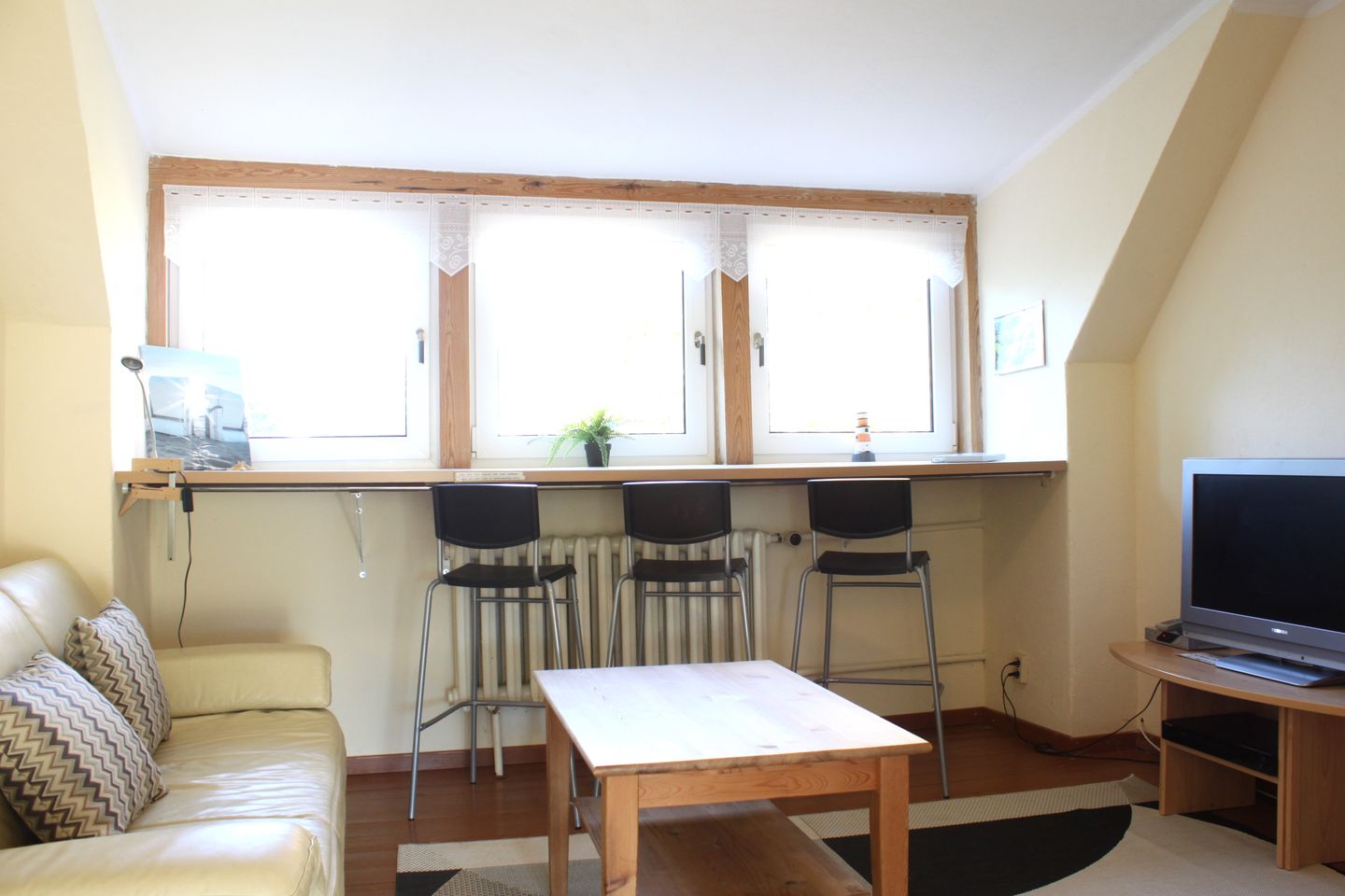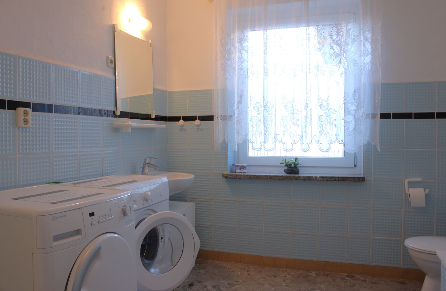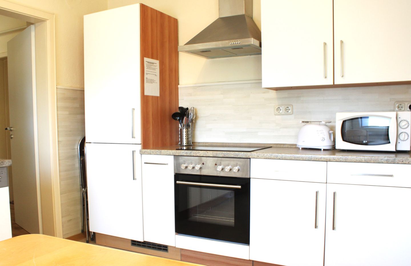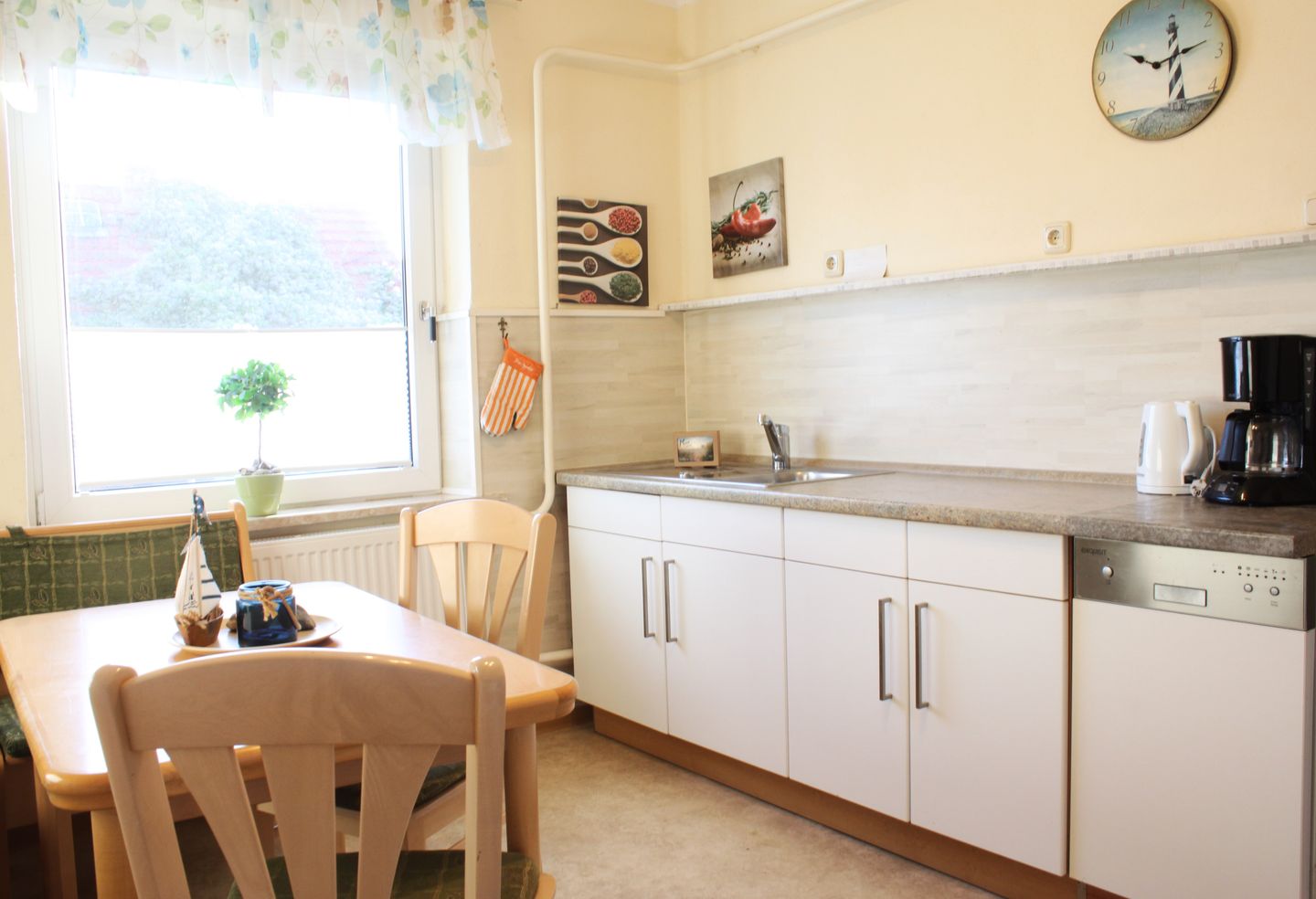 In der separaten Küche mit einem großzügigen Esstisch finden Sie eine erstklassige Ausstattung vor, die Ihnen das Zubereiten köstlicher Mahlzeiten erleichtert. Im geräumigen Wohnzimmer steht Ihnen ein bequemes Sofa zur Verfügung, sodass Sie sich entspannt zurücklehnen können. Es gibt außerdem einen Fernseher sowie einen CD- und DVD-Player für gemütliche Filmabende. Eine Auswahl an DVDs, CDs, Büchern und eine Spielesammlung sorgen für Unterhaltung in Ihrer Freizeit.