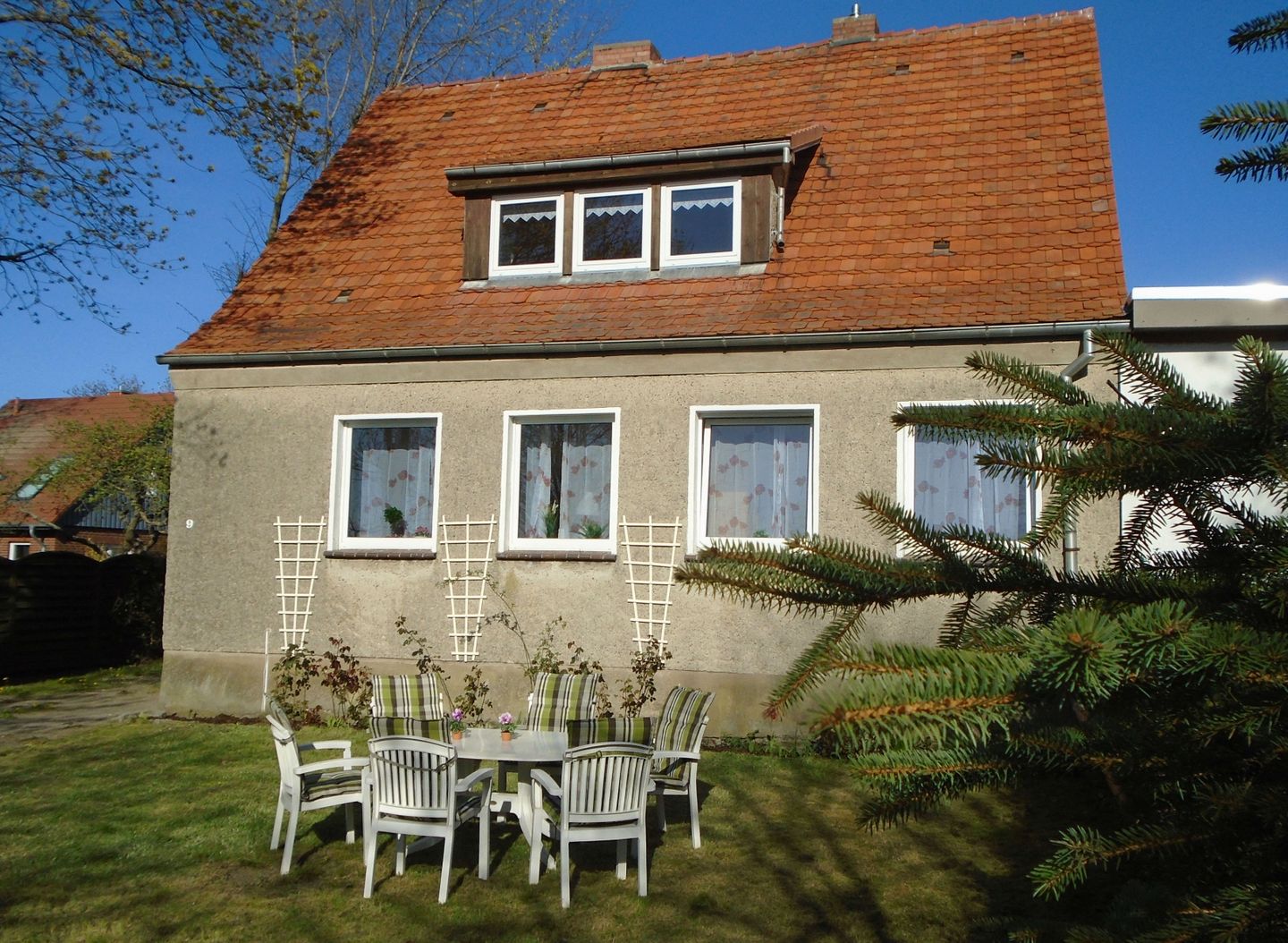 Wir heißen auch Ihre vierbeinigen Freunde herzlich willkommen, denn Haustiere sind in unserem Ferienhaus gestattet. Für Ihr Fahrzeug steht ein Carport zur Verfügung, und insgesamt gibt es drei Parkplätze, sodass Sie sich keine Sorgen um die Parkplatzsuche machen müssen. Im Vorgarten finden Sie gemütliche Gartenmöbel, ideal für entspannte Momente im Freien. Zusätzlich steht ein Kohlegrill bereit, falls Sie Lust auf ein Barbecue haben.