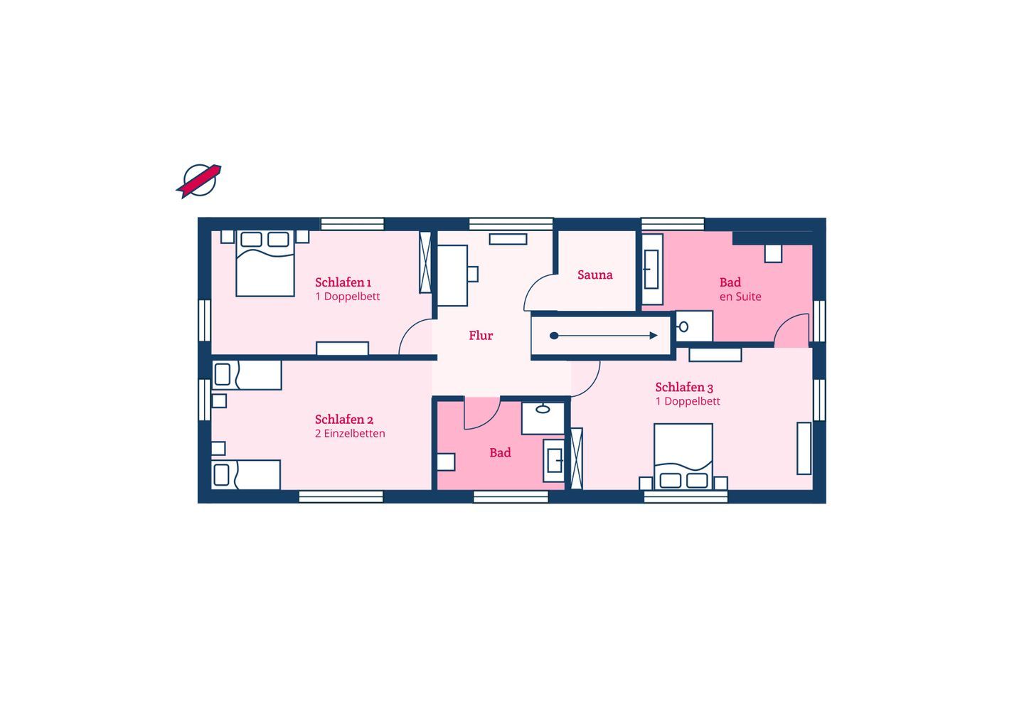Das exklusive Landhaus Marie verfügt über 3 Schlafzimmer und 3 Bäder und bietet somit komfortabel Platz für bis zu 6 Personen zuzüglich einer Kleinkinderaufbettung.