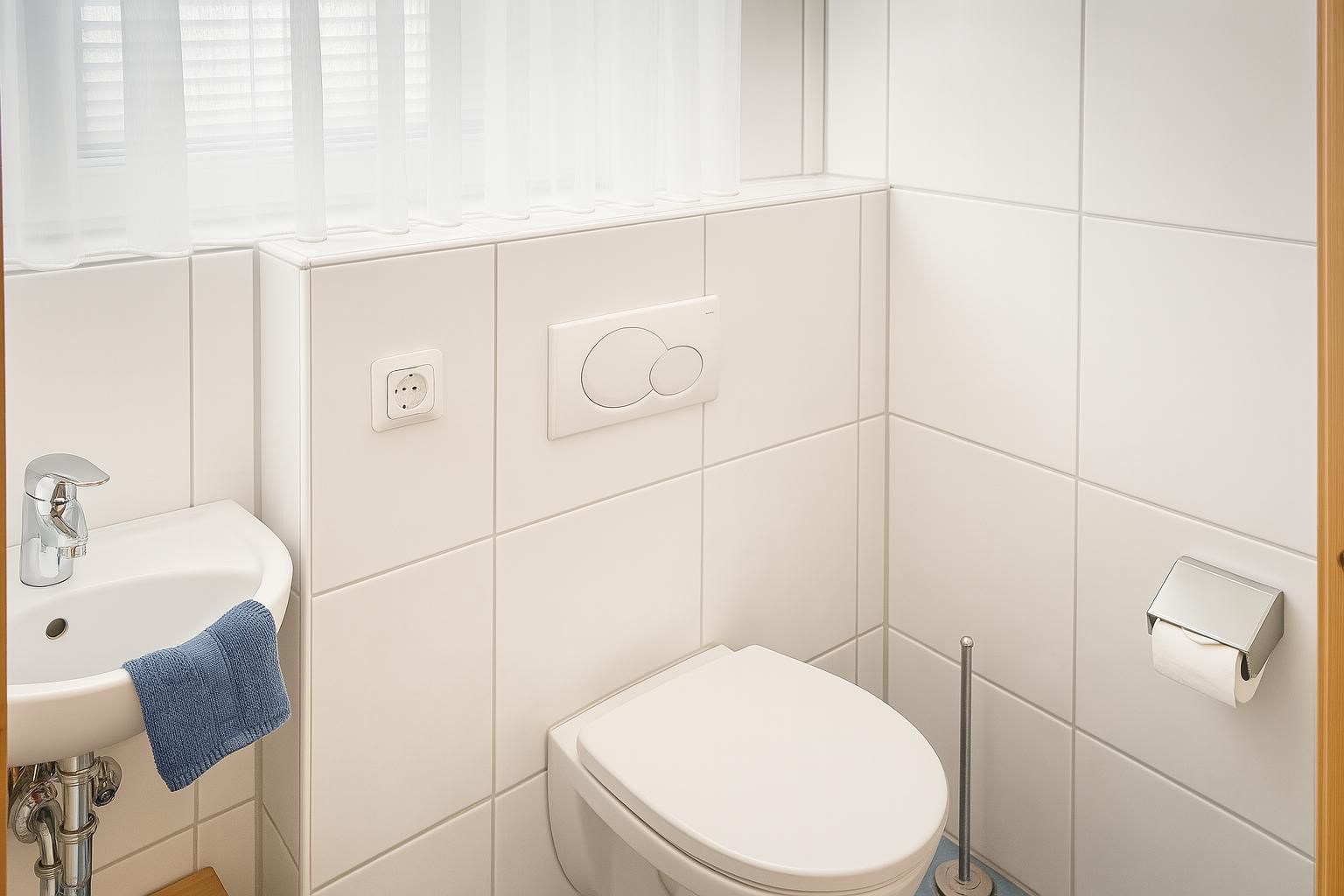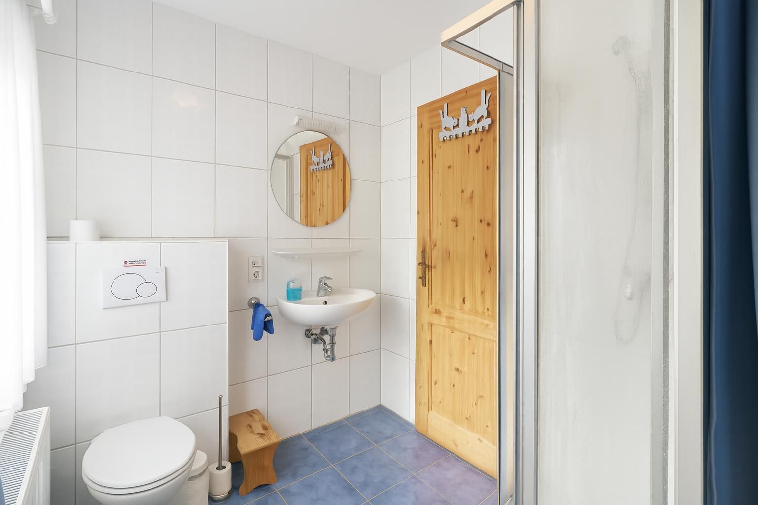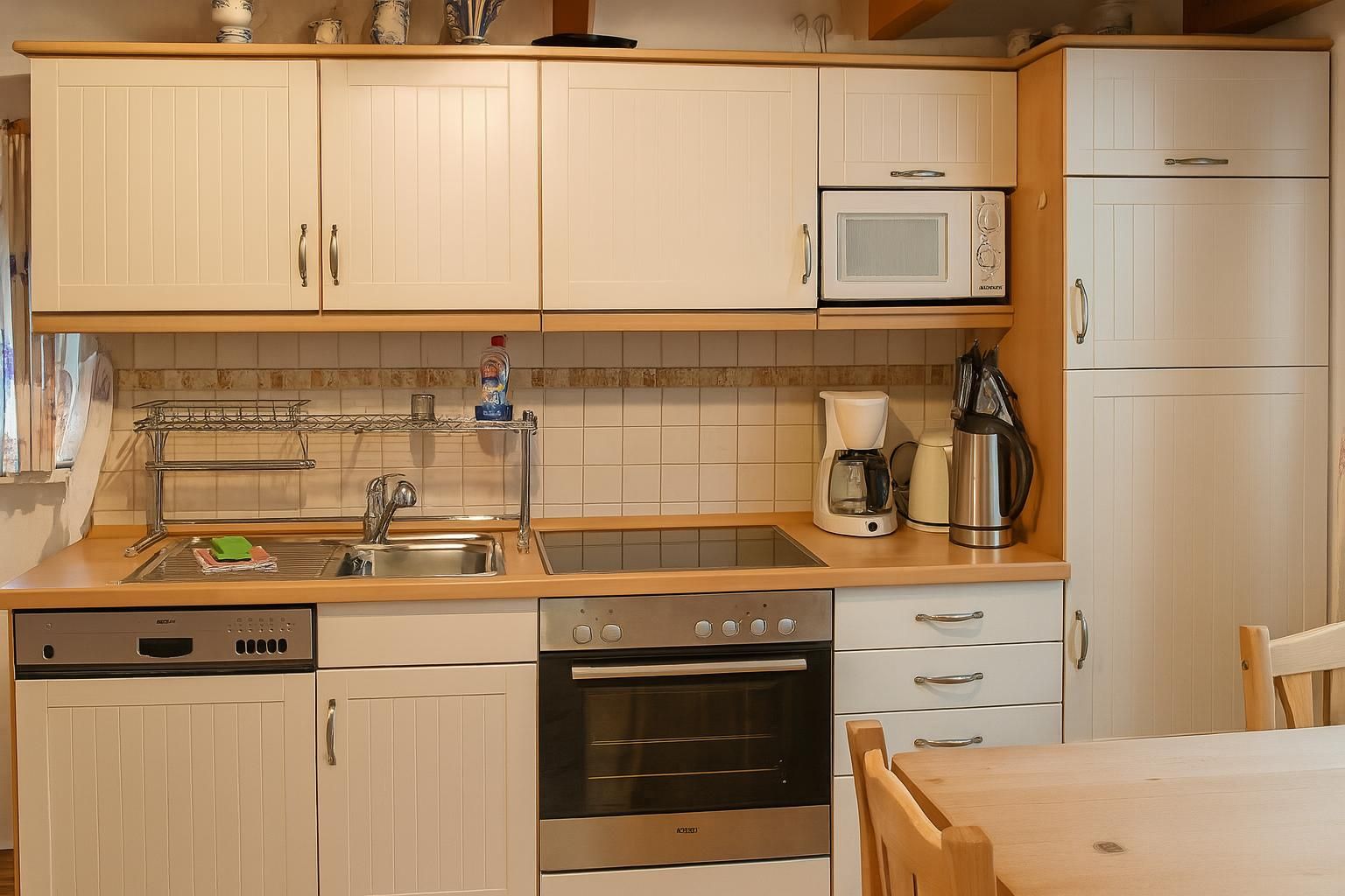 Die Ferienwohnung verfügt über einen eigenen Gartenanteil mit Terrasse nebst Gartenmöbeln, der vom Rest des Gartens abgegrenzt ist. So kann man seinen Nachmittagskaffee auch ganz in Ruhe in der Sonne genießen. Aber auch der große Garten mit kleinem Spielplatz ist für die Gäste mitnutzbar.Die Küche ist voll ausgestattet mit Herd, Backofen, Dunstabzug, großem Gefrierschrank, Kühlschrank und Spülmaschine. In den Schränken befindet sich alles von elektrischem Dosenöffner bis zum Waffeleisen. Auch eine Grundausstattung von Kaffeefilter bis Salz und Pfeffer ist (sofern nicht vom Vormieter verbraucht) vorhanden. Vom Esstisch aus hat man einen herrlichen Blick auf den Deich.Das Badezimmer ist ausgestattet mit Dusche, WC und Waschbecken. Außerdem befindet sich hier die Waschmaschine und der Wäschetrockner. Waschpulver ist (sofern nicht vom Vormieter verbraucht) ebenfalls vorhanden. Im Bad ist auch ein Fön, ein Bügeleisen, ein Staubsauger sowie dieverse Putzmittel verstaut.