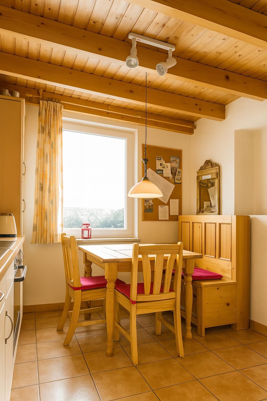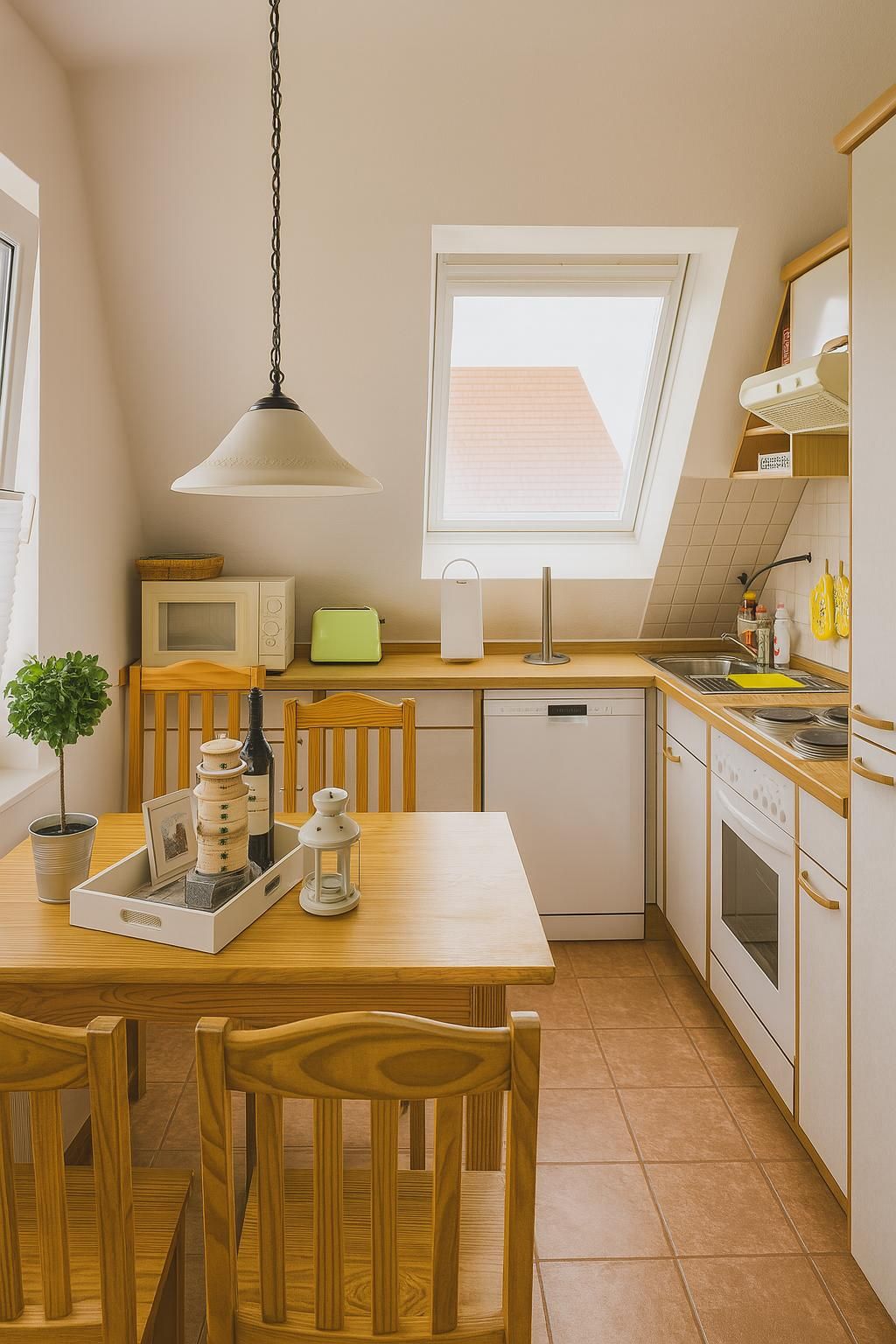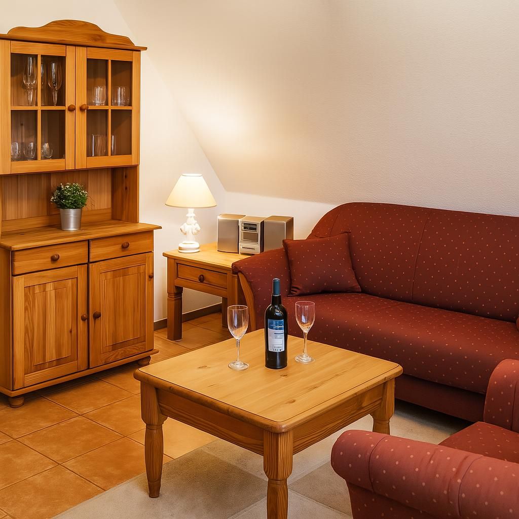 Diese Ferienwohnung bietet Platz für 4 Personen. Bei Bedarf kann allerdings noch ein Klappbett oder ein Babyreisebett aufgestellt werden. Das Besondere an dieser Wohnung ist der ausgebaute Spitzboden, in dem sich das (Kinder-)Schlafzimmer sowie eine schöne Spielecke befindet. Hier fühlt sich einfach JEDER sofort wohl.
