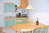 * Im Wohnbereich integrierte Einbauküche, ausgestattet mit: 4-Cerankochfeld, Dunstabzugshaube, Kühlschrank mit Gefrierfach, Toaster, Wasserkocher, Kaffeemaschine, Wasserkocher, Geschirrspüler, Mikrowelle und Küchenutensilien sowie einem Esstisch mit 4 Stühlen