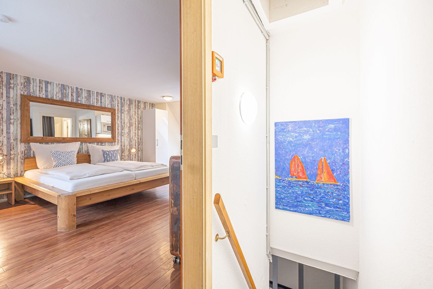 - Baubedingt erreichen Sie das Apartment über ein etwas schmaleres Treppenhaus.