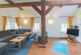 Von der freundlichen Diele mit Garderobe aus gelangen Sie nach rechts zuerst in den Wohnraum mit Kaminofen, großer Sitzlandschaft und Sessel. Direkt dahinter befindet sich die voll ausgestattete Küchenzeile mit Essbereich in maritimen Farbtönen. Auf der EG-Ebene gibt es das erste Duschbad/WC. Eine offene Holztreppe führt ins Obergeschoß. Hier befindet sich das weitere Duschbad mit WC sowie die beiden Schlafräume mit zwei Doppelbetten und viel Platz für Kleidung.