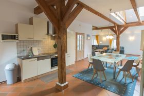 Bis zu 6 Personen haben Platz in der hundefreundlichen Ferienwohnung mit Haus-Charakter - auf 115 qm, 2 1/2 Etagen und eigener Terrasse inklusive Gemeinschaftsnutzung der Poolhalle, Sauna und Spielscheune. Ihre Vierbeiner sind herzlich willkommen. Die ebenerdig zugängliche Wohnung befindet sich mitten im Grünen auf unserem Reitlandhof Franke in Stadland und ist eine von insgesamt 4 Ferienwohnungen - somit auch für Gruppenanfragen und Monteure interessant.