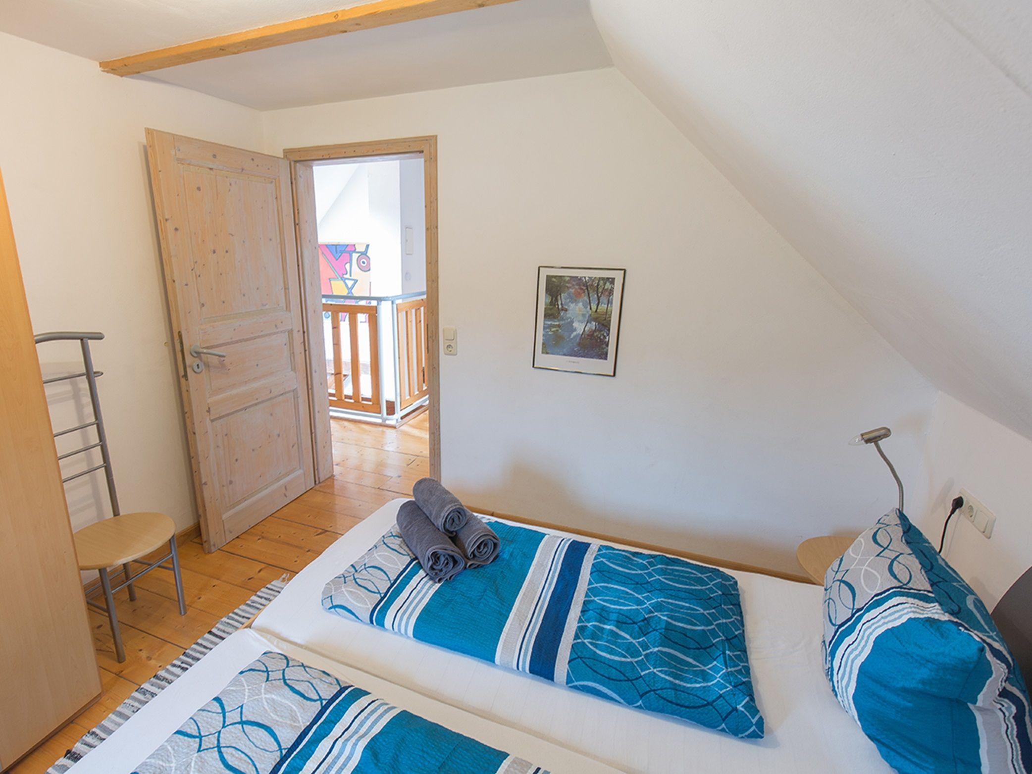 2 weitere Einzelbetten befinden sich auf der offenen Schlafempore. Dieser Schlafbereich ist nicht abschleßbar.