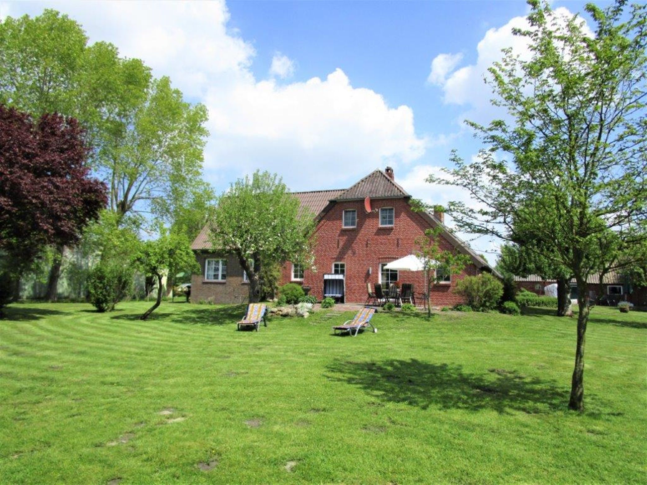 Die ebenerdig zugängliche Wohnung befindet sich mitten im Grünen auf unserem Reitlandhof Franke in Stadland und ist eine von insgesamt 4 EG-Wohnungen - somit auch für Gruppenanfragen und Monteure interessant. Von der freundlichen Diele mit Garderobe aus gelangen Sie nach rechts zuerst in den Wohnraum mit Kaminofen und dem großzügigen Esszimmer. Direkt dahinter befindet sich die separate voll ausgestattete Küche mit Essbereich in maritimen Farbtönen. Ein Duschbad mit WC gibt es auf der unteren Ebene. Eine offene Holztreppe führt ins Obergeschoß. Hier befindet sich das weitere Duschbad mit WC sowie die beiden Schlafräume mit zwei Doppelbetten und viel Platz für Kleidung. Auf der offenen Schlafempore gibt es 2 weitere Einzelbetten. Dieser Schlafbereich ist nicht abschließbar. Nutzen Sie ihre eigene große Terrasse mit Blick ins Grüne. Die Wohnung hat einen separaten Zugang und eine eigene möblierte Terrasse. Genügend Parkplätze befinden sich direkt vor dem Gebäude. WLAN steht selbstverständlich kostenfrei zur Verfügung. Die hauseigene Poolhalle (unbeheizt) bietet unseren Gästen Badespaß. Die Nutzung der dortigen Sauna ist inklusive. Ebenso gibt es eine überdachte Spielscheune.