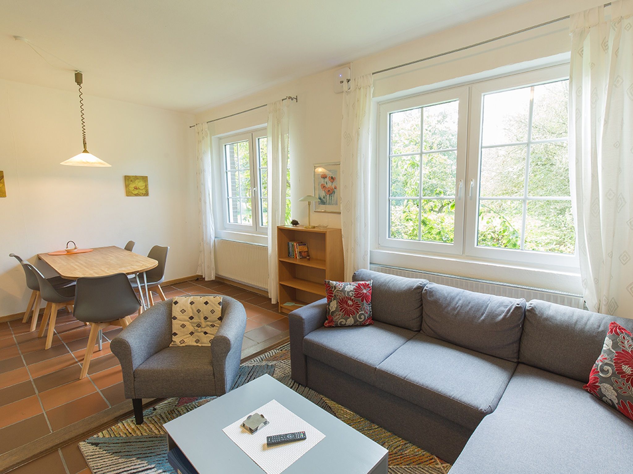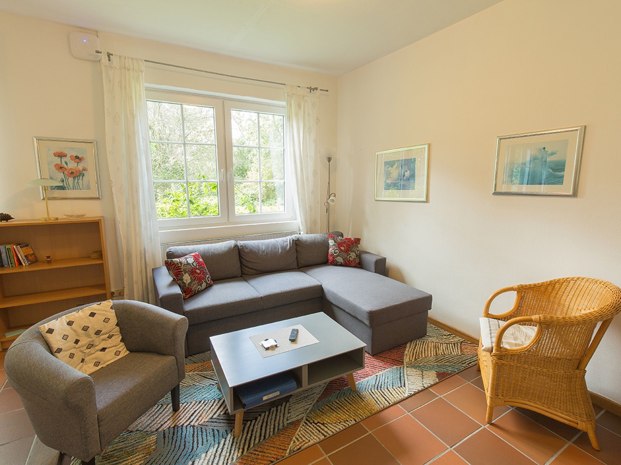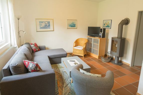 Bis zu fünf Gäste haben Platz in der hundefreundlichen EG-Wohnung mit Haus-Charakter, 60 qm mit Terrasse auf zwei Etagen inklusive Gemeinschaftsnutzung der - unbeheizten - Poolhalle , der Sauna und der überdachten Spielscheune. Die ebenerdig zugängliche Wohnung befindet sich an der Nordseeküste mitten im Grünen auf unserem Reitlandhof Franke in Stadland.