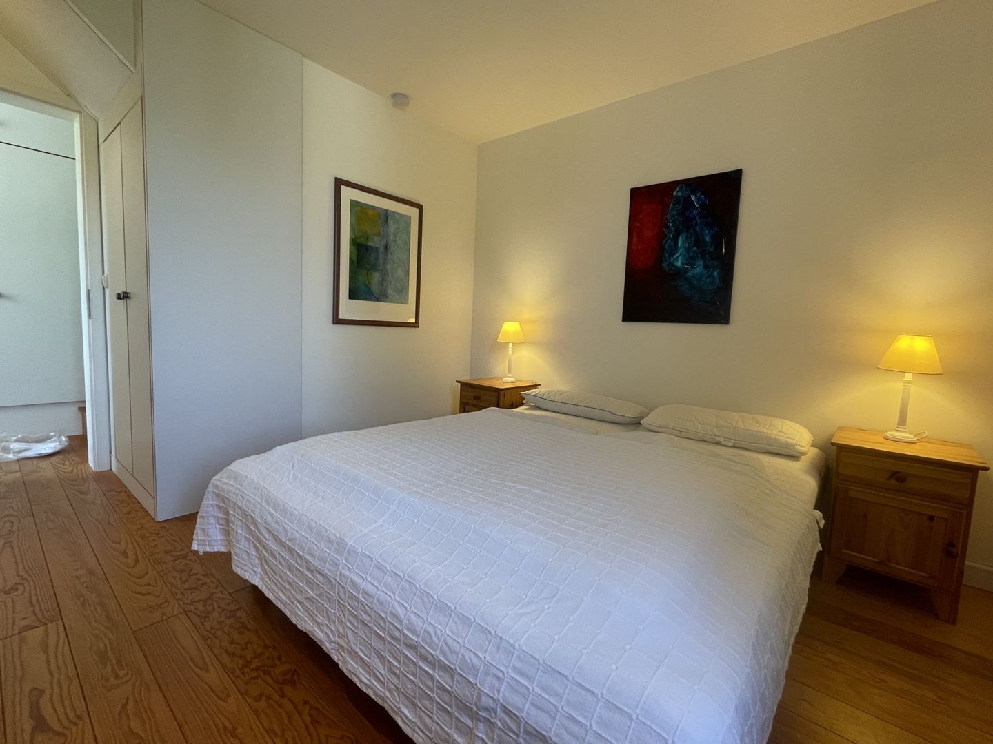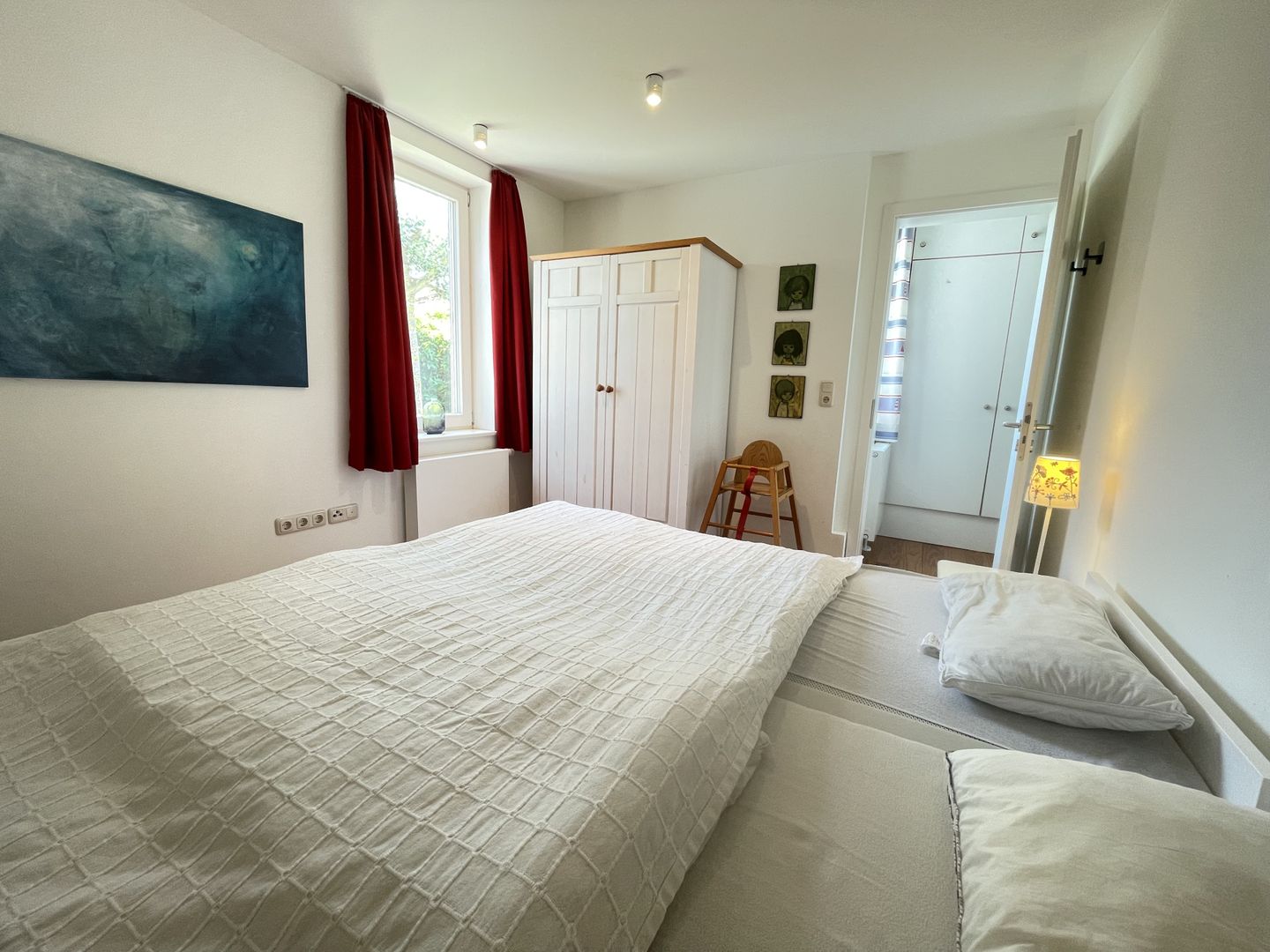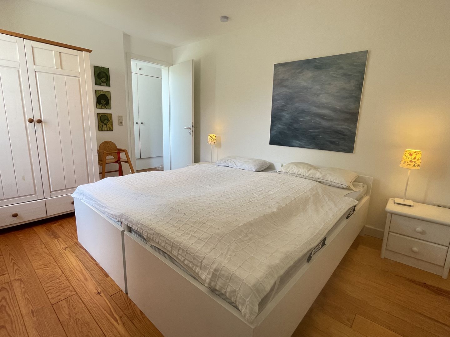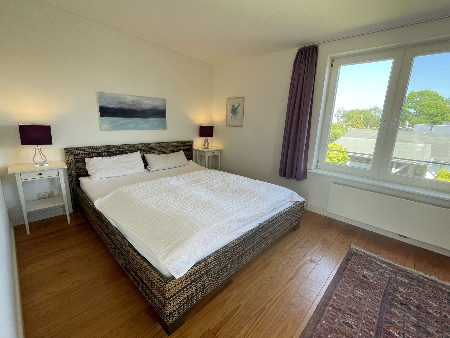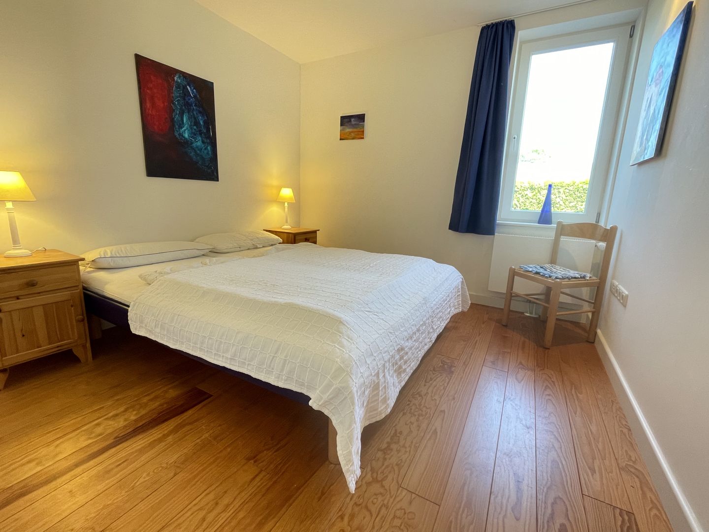 Das sehr helle und geschmackvoll eingerichtete Ferienhaus Lo-La verfügt im Erdgeschoss über 2 Schlafräume mit einem Doppelbett 180x200 cm und 160x200 cm, sowie ein weiteres Schlafzimmer (180x200 cm) im Obergeschoss, in dem auch das Kinder-Reisebett Platz findet. Ein Kinderhochstuhl ist ebenfalls vorhanden.