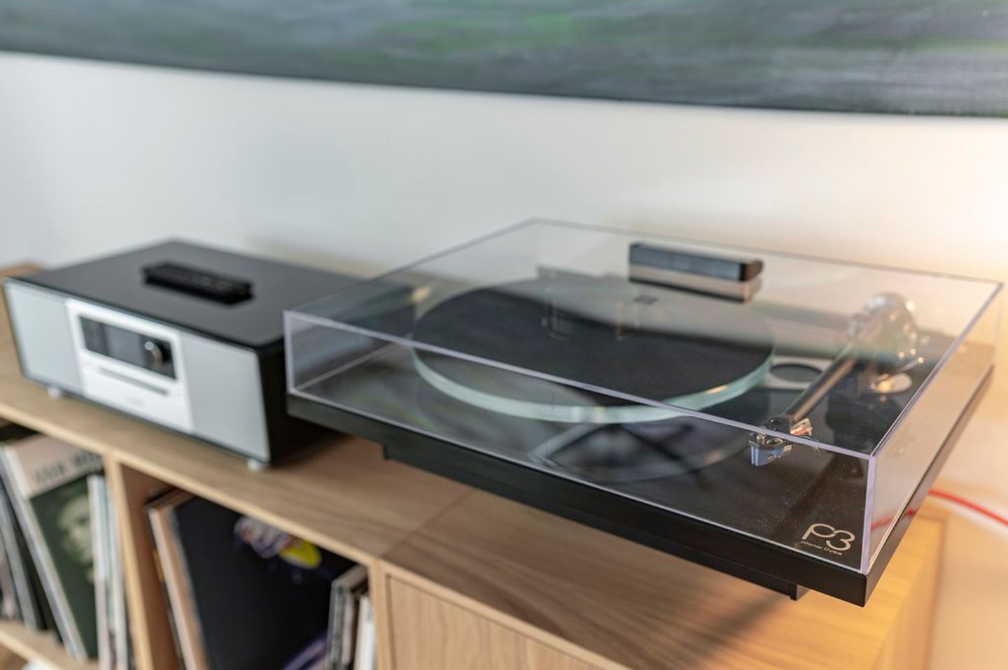 Ein besonderes Highlight ist das Medienregal mit einem Plattenspieler und Schallplatten.