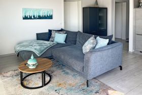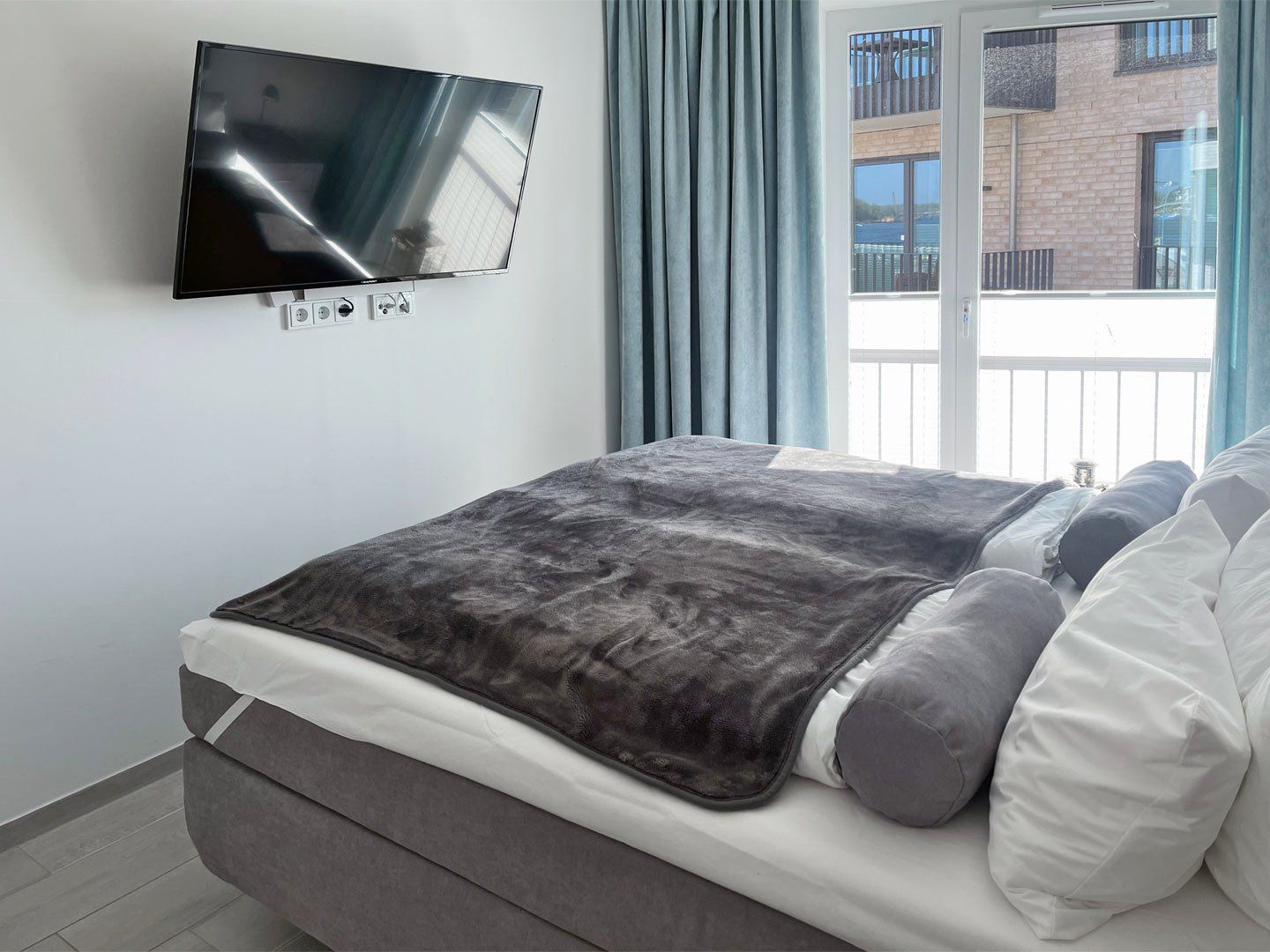 Sie bietet eine moderne maritime Einrichtung für einen entspannten Aufenthalt.