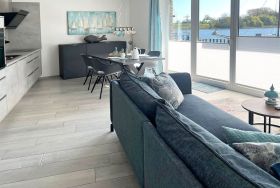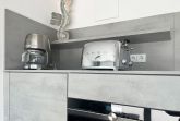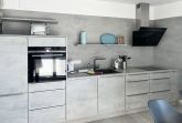 Der großzügige Wohn-/ Essbereich ist mit einer modernen Design-Küche und gemütlichen Sitzmöglichkeiten ausgestattet.