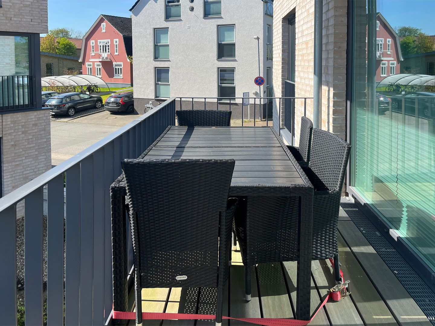 Der Balkon, welcher über den Wohn-/ Essbereich zu erreichen ist, verfügt über Gartenmöbel.