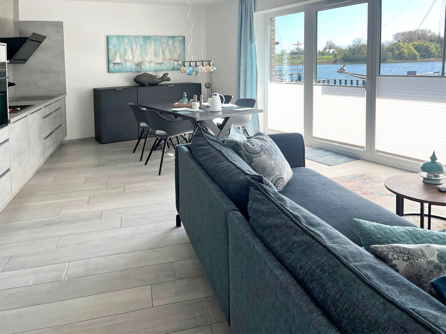 Die Ferienwohnung „132°SO“ mit Blick auf die Schlei liegt in unmittelbarer Nähe zum Museumshafen und dem belebten Zentrum.