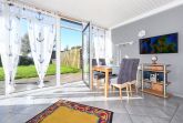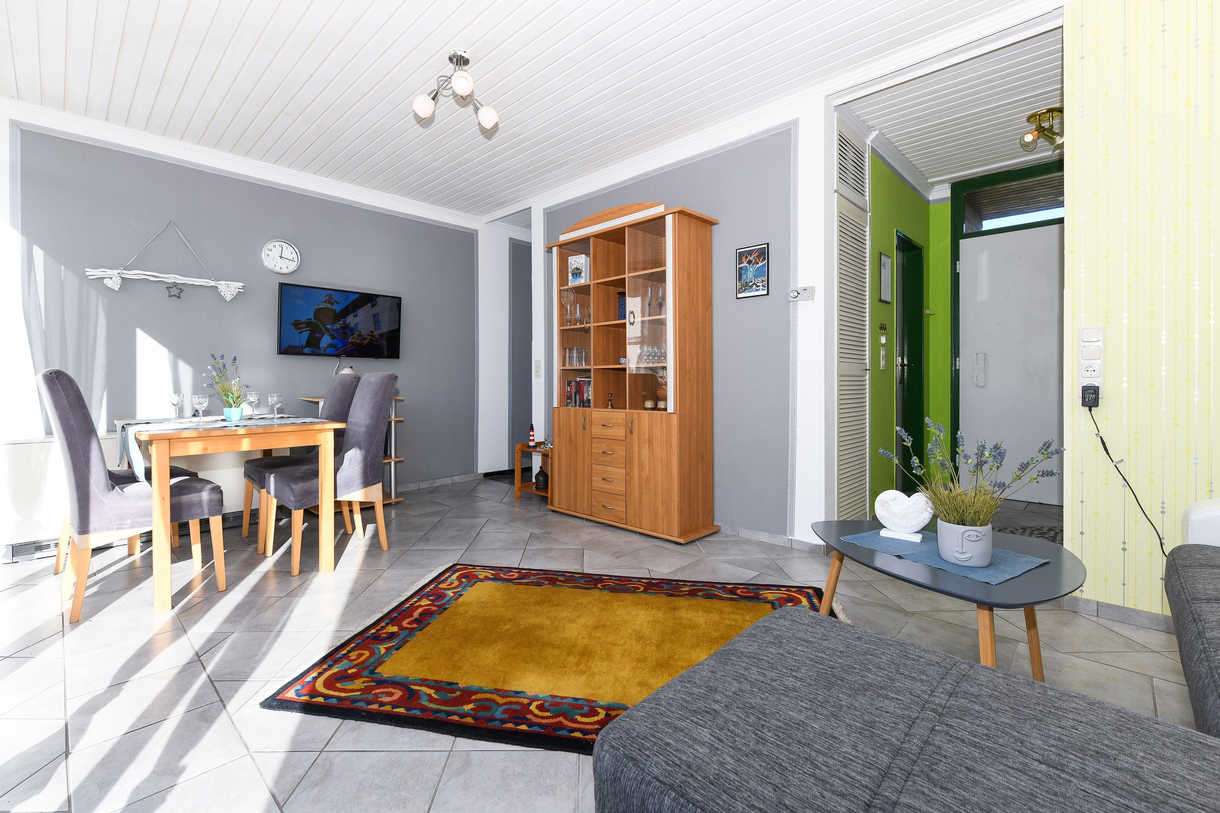 Das Ferienhaus ist ein vollständig ebenerdiger Bungalow. Es ist freundlich-gemütlich gestaltet und eingerichtet sowie sehr gut ausgestattet mit allem, was Sie für Ihren Nordsee-Urlaub in Bensersiel benötigen werden. Es verfügt über eine Wohnfläche von ungefähr 50 Quadratmetern zuzüglich einer schönen, geschützten Terrasse am Wohnzimmer. Einen Garten gibt es ebenfalls an der Terrassenseite. So ist das Ferienhaus „Windrose Nord“ bestens urlaubs-geeignet für zwei bis vier Personen nebst zusätzlichem Kleinkind.