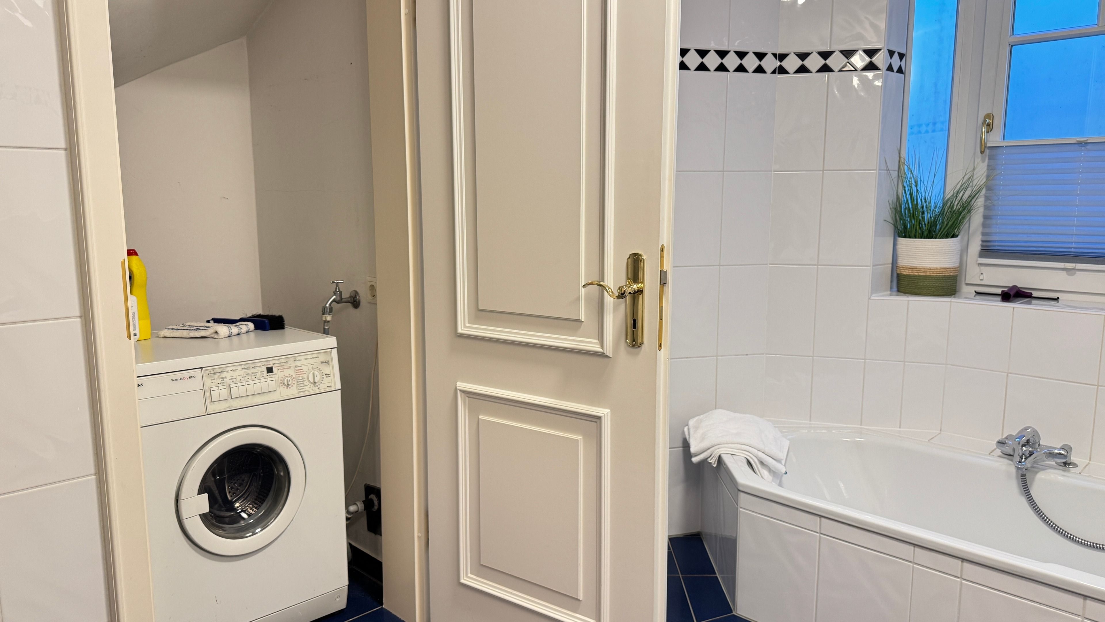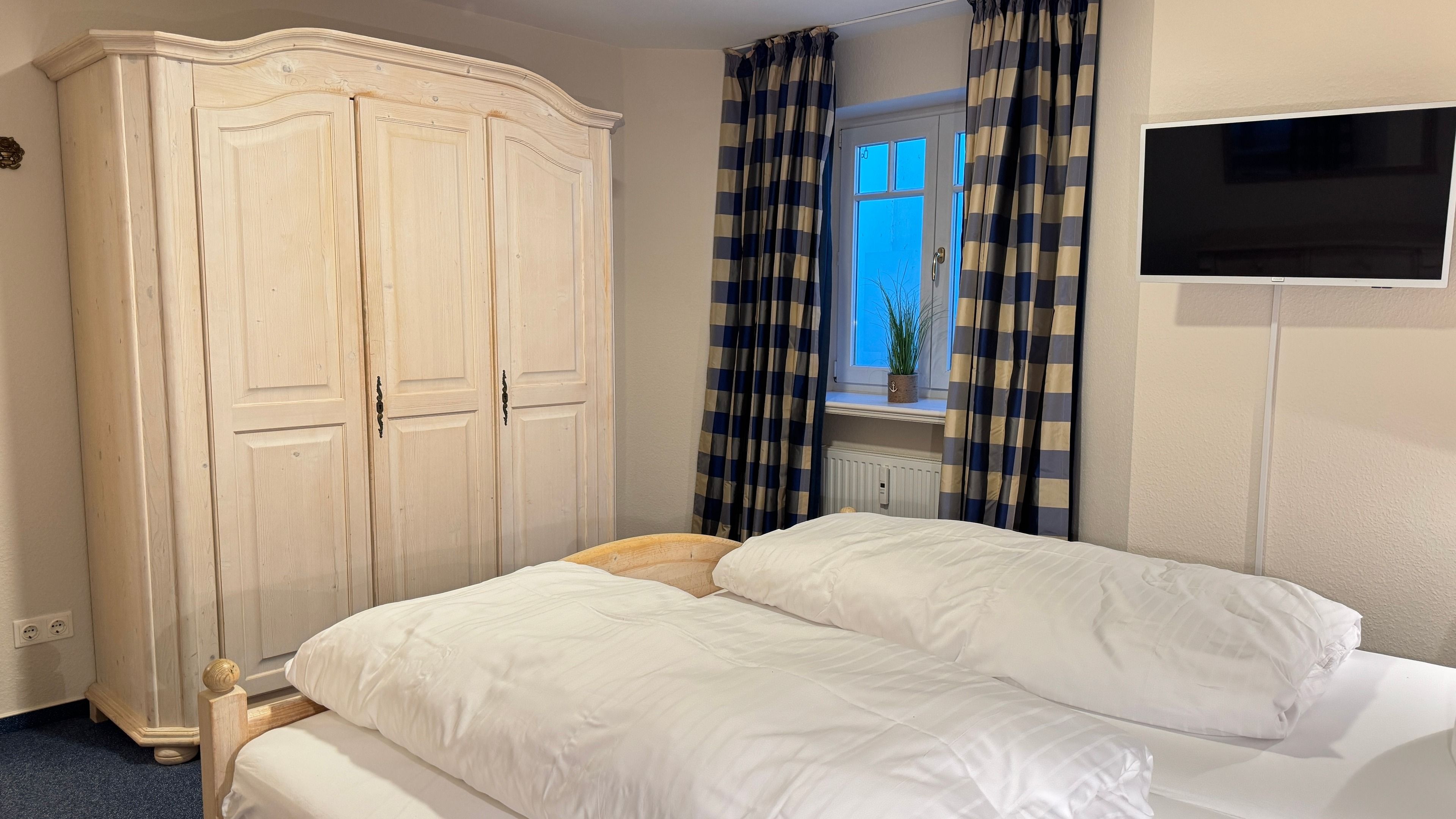 Im Erdgeschoss befinden sich der Wohnraum mit gemütlicher Sitz- und Essecke (im Erker), eine offene Küche, ein Schlafzimmer mit Doppelbett, ein Duschbad/WC sowie eine Südwest-Terrasse mit Strandkorb (April–Oktober). Im Untergeschoss erwarten Sie zwei weitere Schlafzimmer – eines mit Doppelbett, eines mit französischem Doppelbett – sowie ein Vollbad/WC mit Waschmaschine und Trockner.