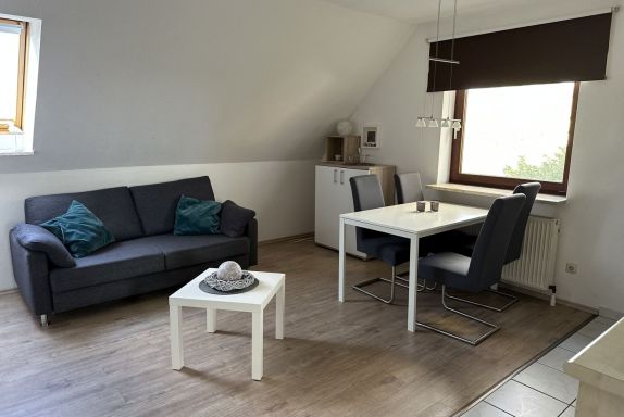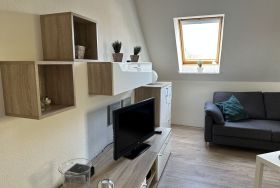 - Wohn-, Esszimmer mit Schlafcouch (160 x 200 cm) und TV