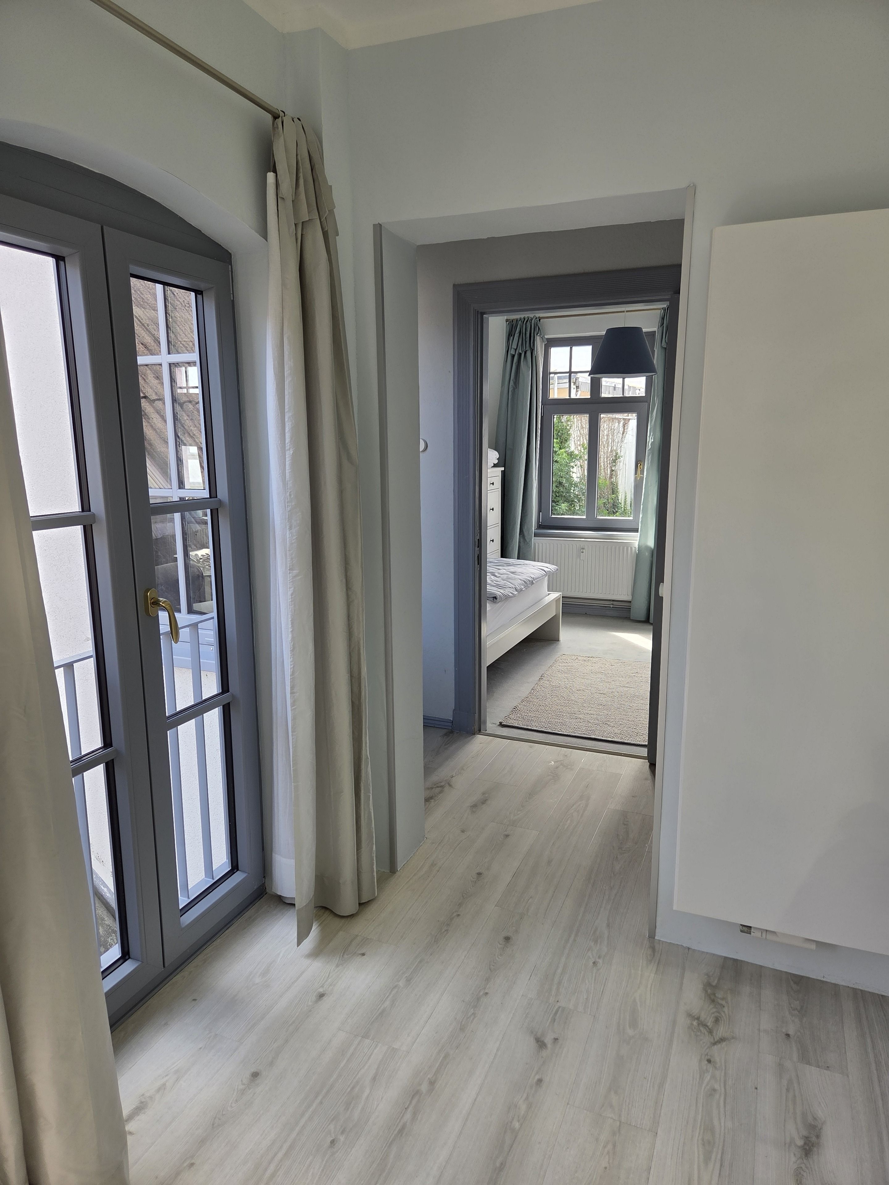 Helle, charmante, neu und sehr niveauvoll renovierte ca. 80 m2 große Wohnung mit Wohnzimmer, 2 Schlafzimmern, Küche inkl. Essecke, Bad, Flur sowie Treppenaufgang mit Zugang zum Innenhof. Ausgestattet mit Digital TV, WLAN, großzügiger Sitzgruppe, Sideboard im Wohnzimmer, Küche mit Herd/ Backofen/ Mikrowelle/ Geschirrspülmaschine/ Kaffeevollautomat; Bad besteht neben WC und Waschbecken aus großzügiger überlanger Dusche mit Fenster zum Innenhof; Schlafzimmer haben Kommode, Schrank, Frisiertisch sowie Betten von je 90 x 200 cm. Ein abschließbarer Fahrradstellplatz ist vorhanden.