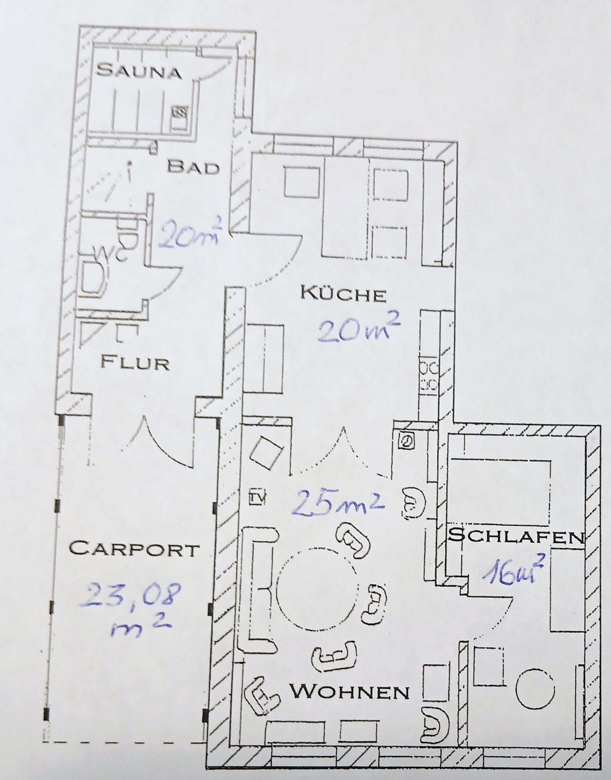 Die stilvolle 82 qm große Nichtraucher-Ferienwohnung***** für 2 Personen mit separatem Eingang und eigenem Carport ist mit allem Komfort ausgestattet, der einen erholsamen Urlaub garantiert.