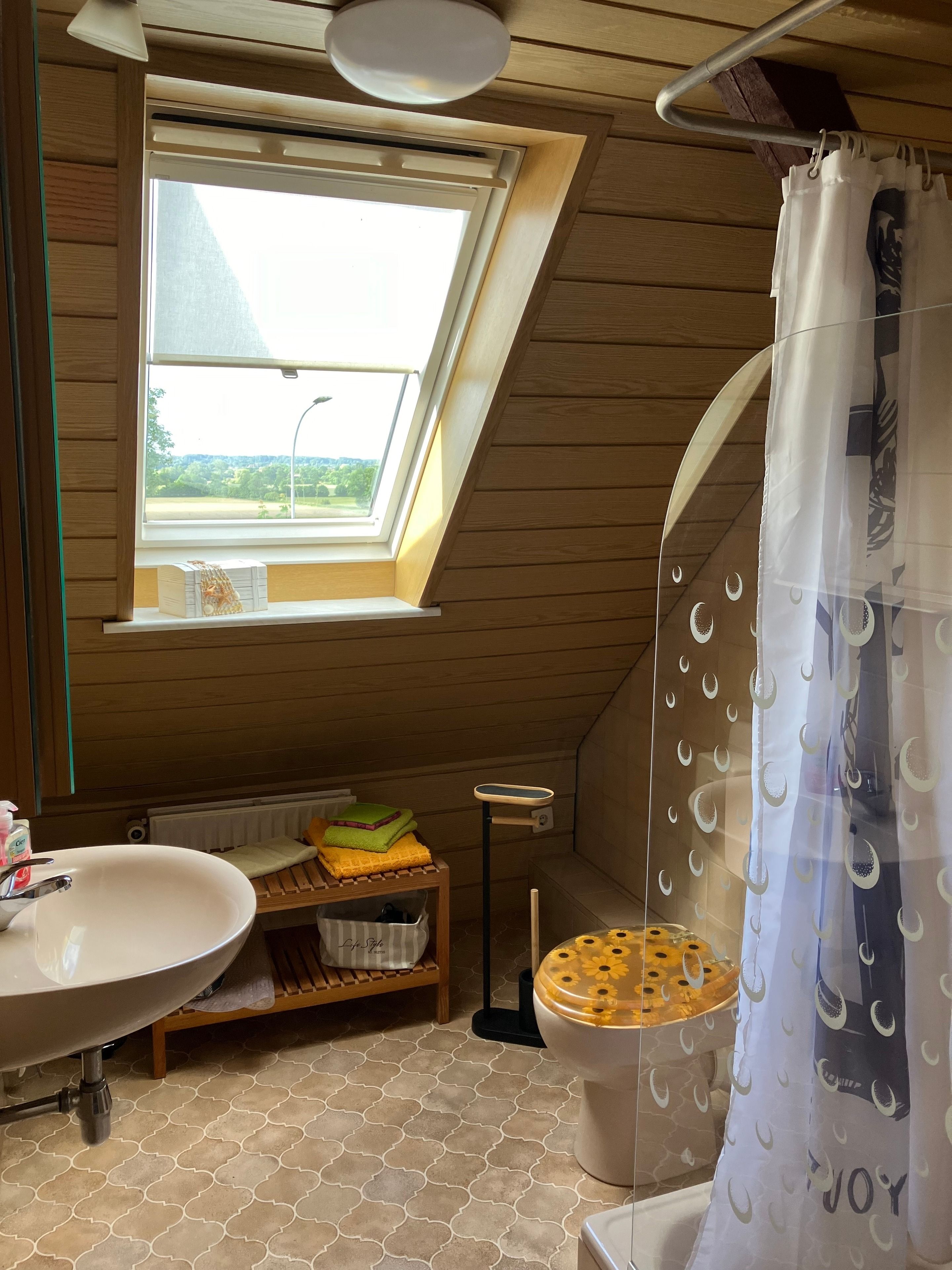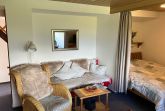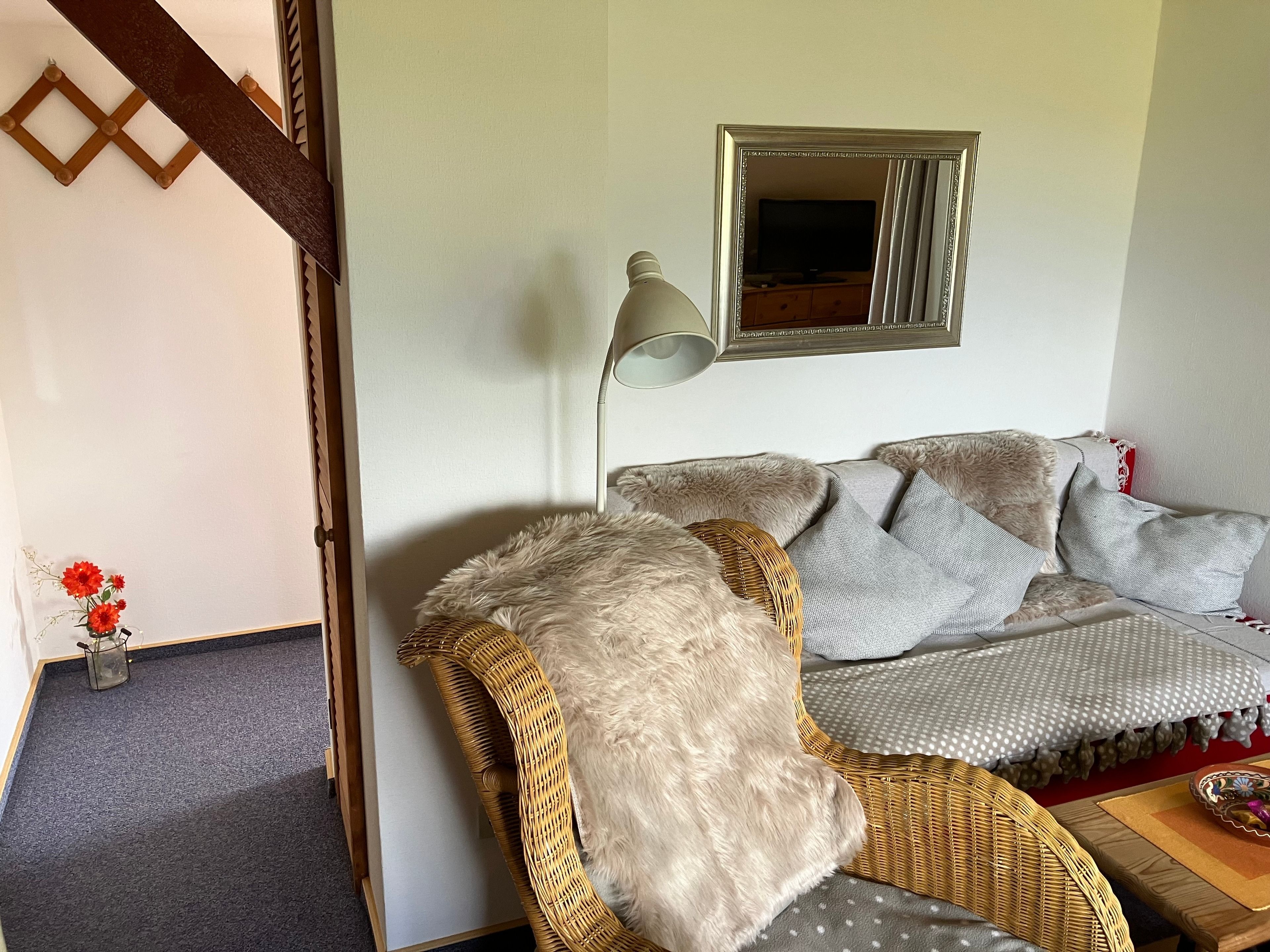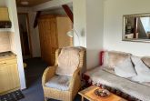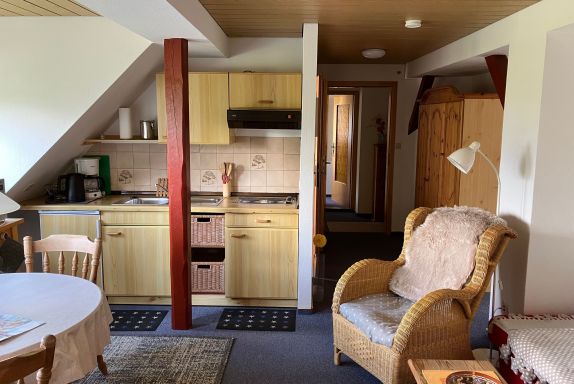 Familienfreundliche Ferienwohnung für 4 Personen im Obergeschoss mit Blick auf Ostsee, Wiesen und Felder. Die Wohnung verfügt über einen kombinierten Wohn- und Schlafraum mit Küchenzeile. Durch einen Vorhang abgetrennt befindet sich im Wohnraum ein gemütliches Doppelbett. Zudem hat die Wohnung ein weiteres Schlafzimmer mit Doppelbett für 2 Personen. Der Küchenbereich ist voll ausgestattet und lädt mit seinem großen Tisch zum Verweilen ein. Ein Badezimmer mit Dusche rundet das Angebot ab.