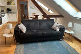 Geschmackvolle und geräumige Nichtraucher-Ferienwohnung auf einer attraktiven und gepflegten Reitanlage im idyllischen Schleidorf Mohrkirch. Die 2-Raum-Wohnung verfügt über einen Schlafraum mit Doppelbett, einen Wohnraum mit SAT-TV und Schlafcouch, eine offene Küche mit Geschirrspüler sowie ein Badezimmer mit Dusche und WC. Babybett und Kinderhochstuhl sind vorhanden, auch Waschmaschine und Wäschetrockner können genutzt werden.