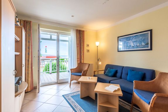 Das 2-Raum-Appartement befindet sich in der Hochpaterre und ist für bis zu 4 Personen geeignet. Das Appartment verfügt über einen Balkon mit frontalen Meerblick.